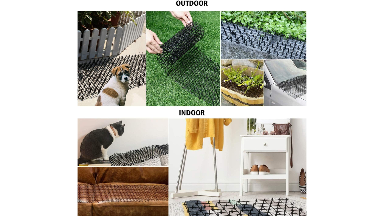 The Kmall Trimmable Pet Deterrent Mat features flexible spikes that prevent cats, dogs, and other animals from digging up plants or resting on furniture. It’s easy to cut and combine for a perfect fit, and the included curved hooks make it secure to the ground. Made from high-quality non-toxic materials to ensure safety and longevity, this mat is the ultimate solution for a harmonious home and garden.