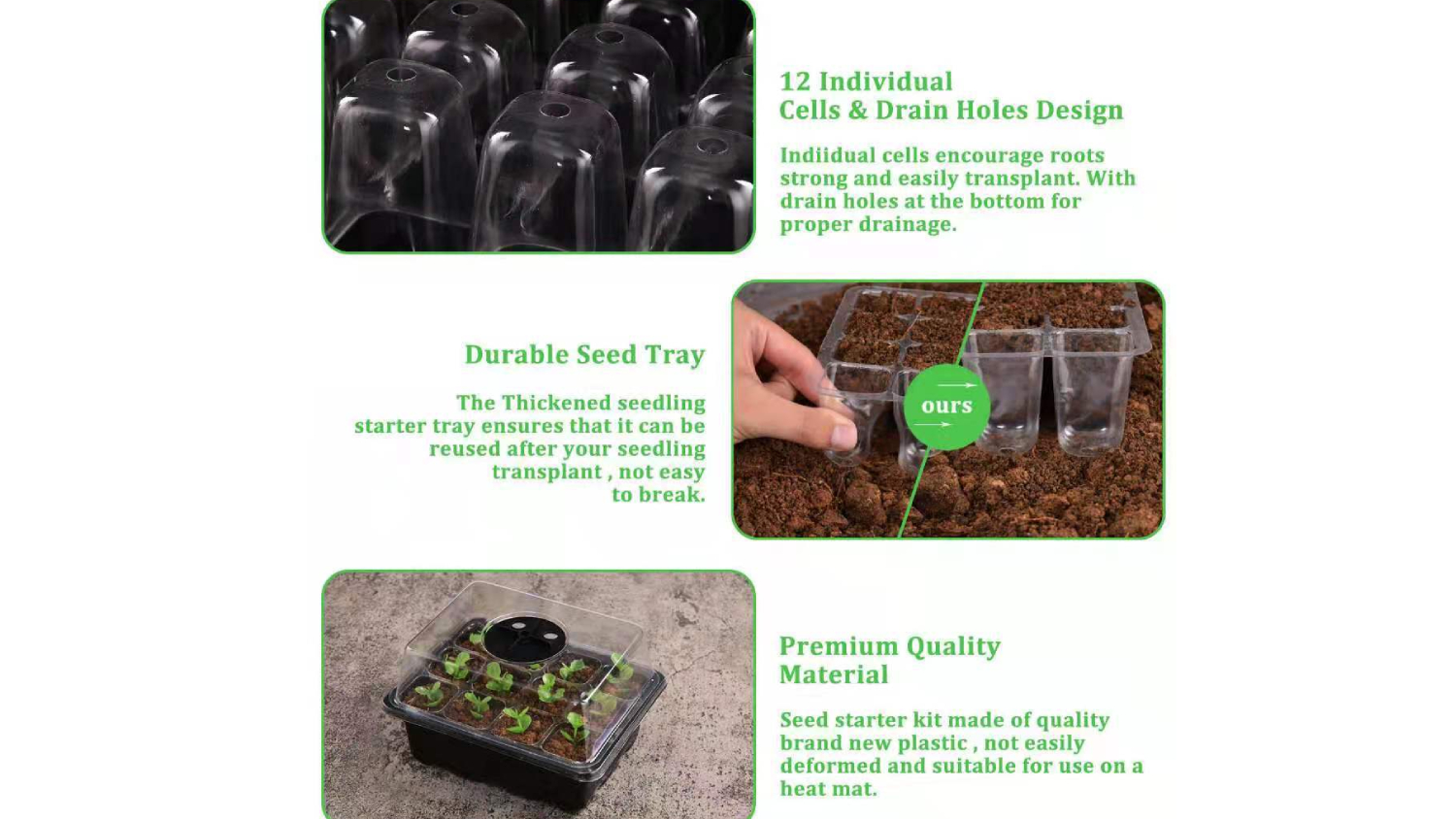 Grow seedlings like a pro with the Kmall 12-Cell Plastic Seedling Starter Tray 10pcs! Each tray features 12 individual cells for organised planting and comes with humidity-adjustable ventilation domes to create the perfect environment for germination. Plus, drainage holes prevent overwatering, keeping your seedlings healthy and happy. Get ready for a thriving garden with this handy starter kit!