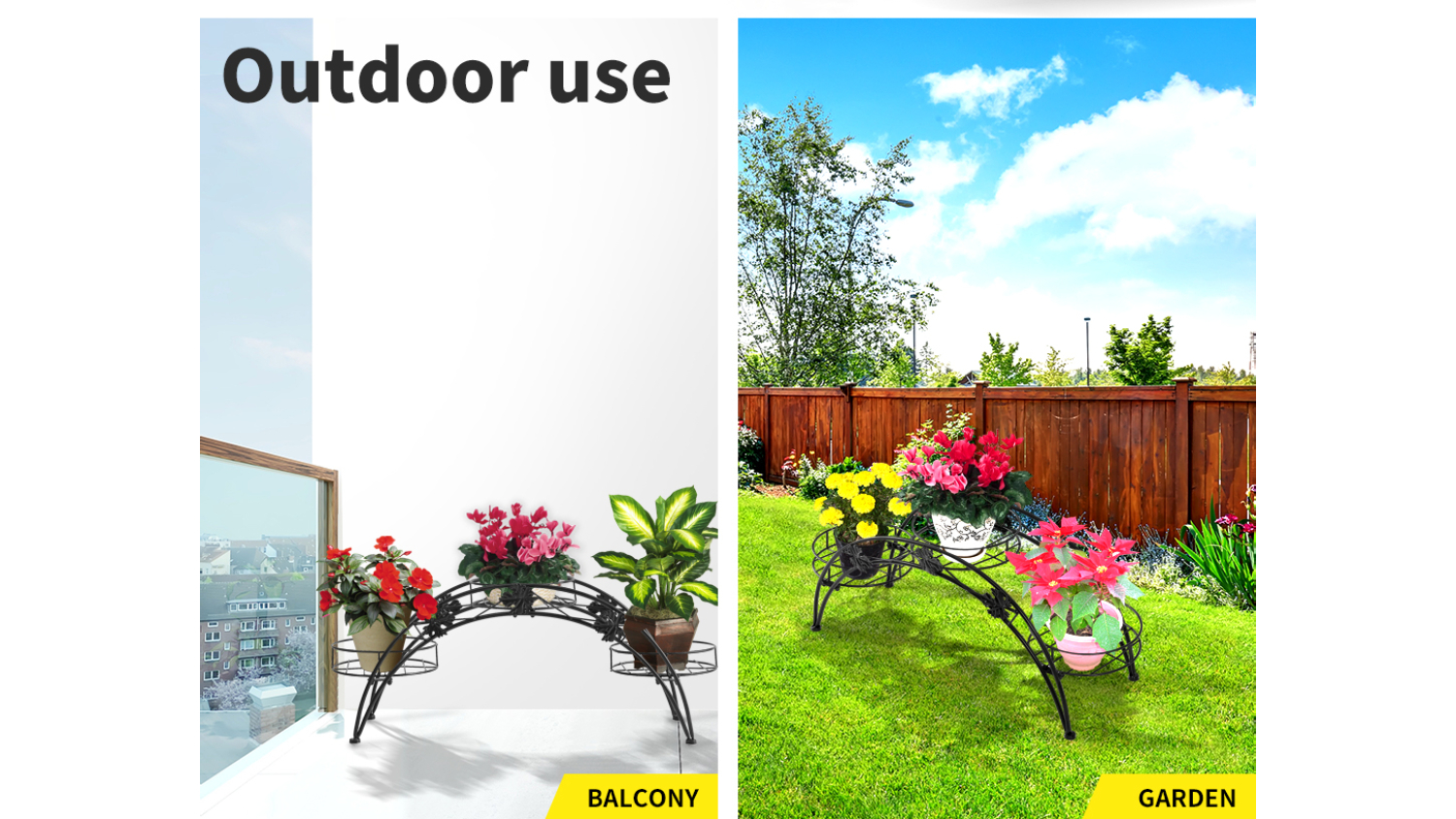Display your greenery in style with the Levede Arched Steel Plant Stand 2pcs. Perfect for balconies, patios, or even indoors, this durable and rust-resistant steel stand features an elegant 3-pot arch design. Create a stylish and inviting atmosphere by showcasing your plants!