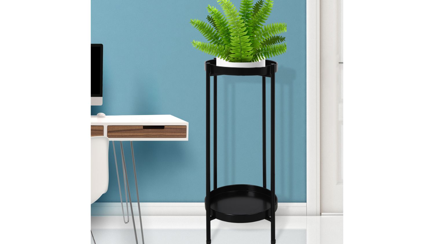 Pretty and Practical 2 Tier Round Metal Plant Stand - Black