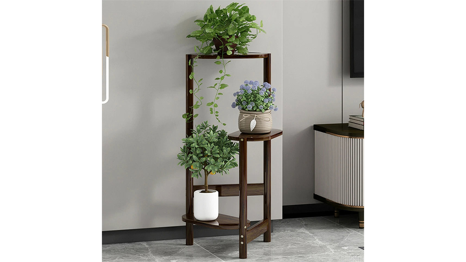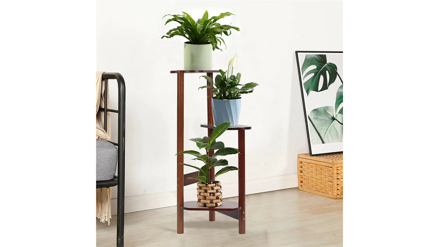Display your greenery with this Pretty & Practical 3-Tier Bamboo Plant Stand. The eco-friendly bamboo construction offers a fresh, natural look without any unpleasant smell. Plus, thanks to its triangular design, the stand remains steady and fits perfectly into corners to free up valuable floor space.