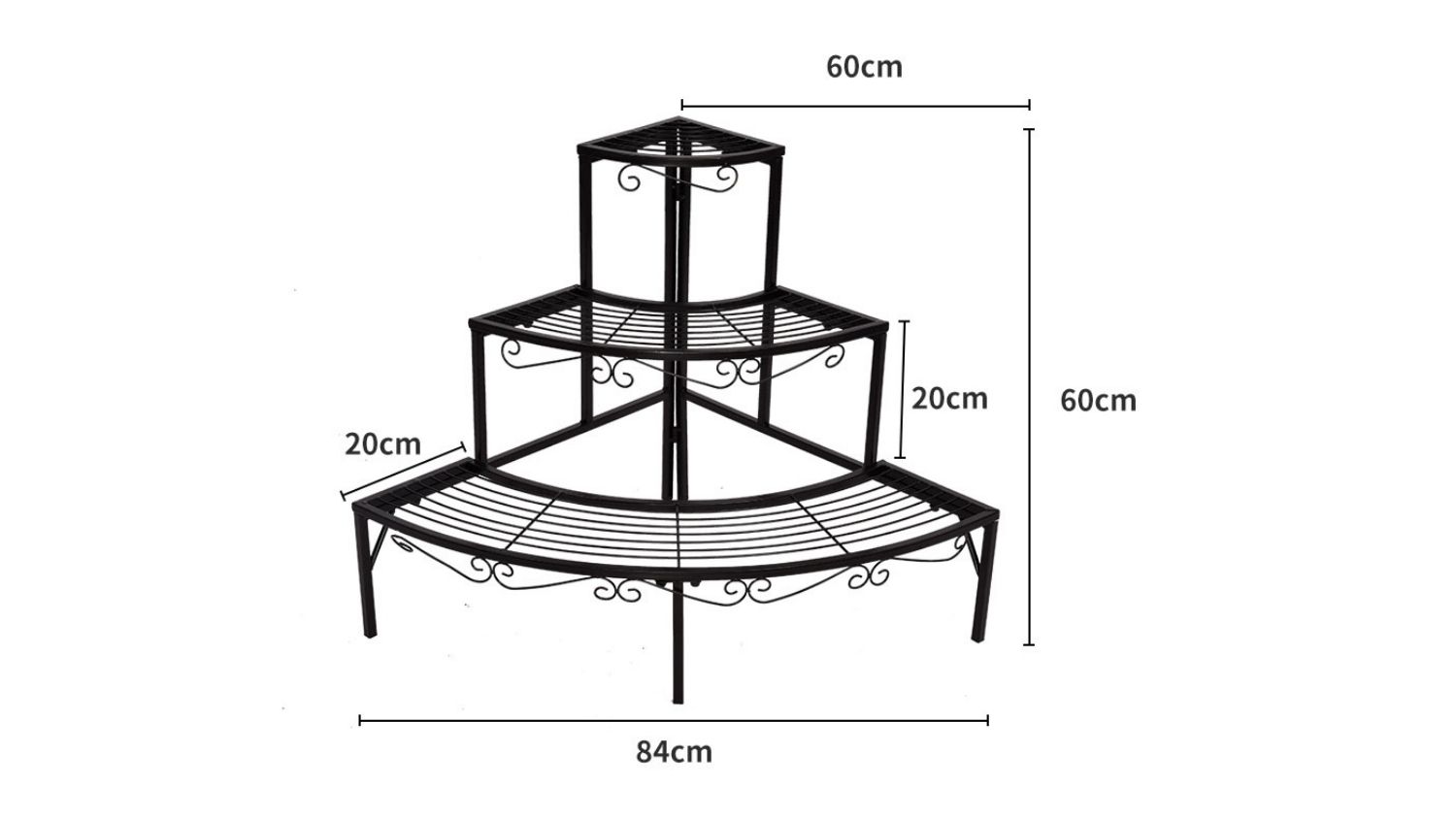 Pretty and Practical 3 Tier Stepped Corner Metal Plant Stand - Black