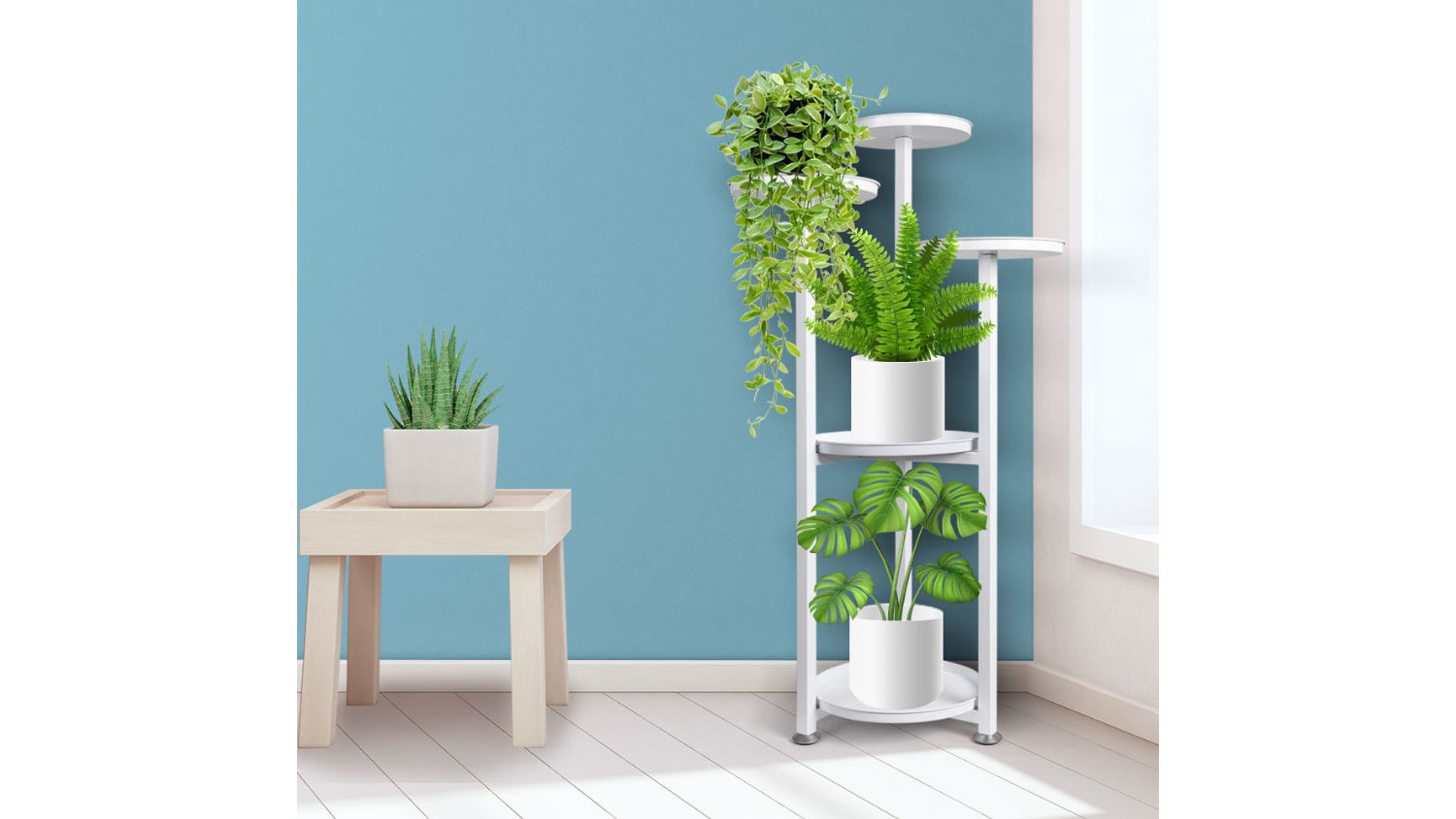 Pretty and Practical 5 Tier Round Metal Plant Stand - White