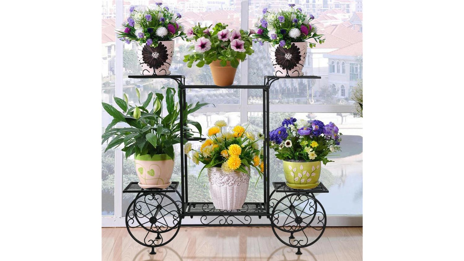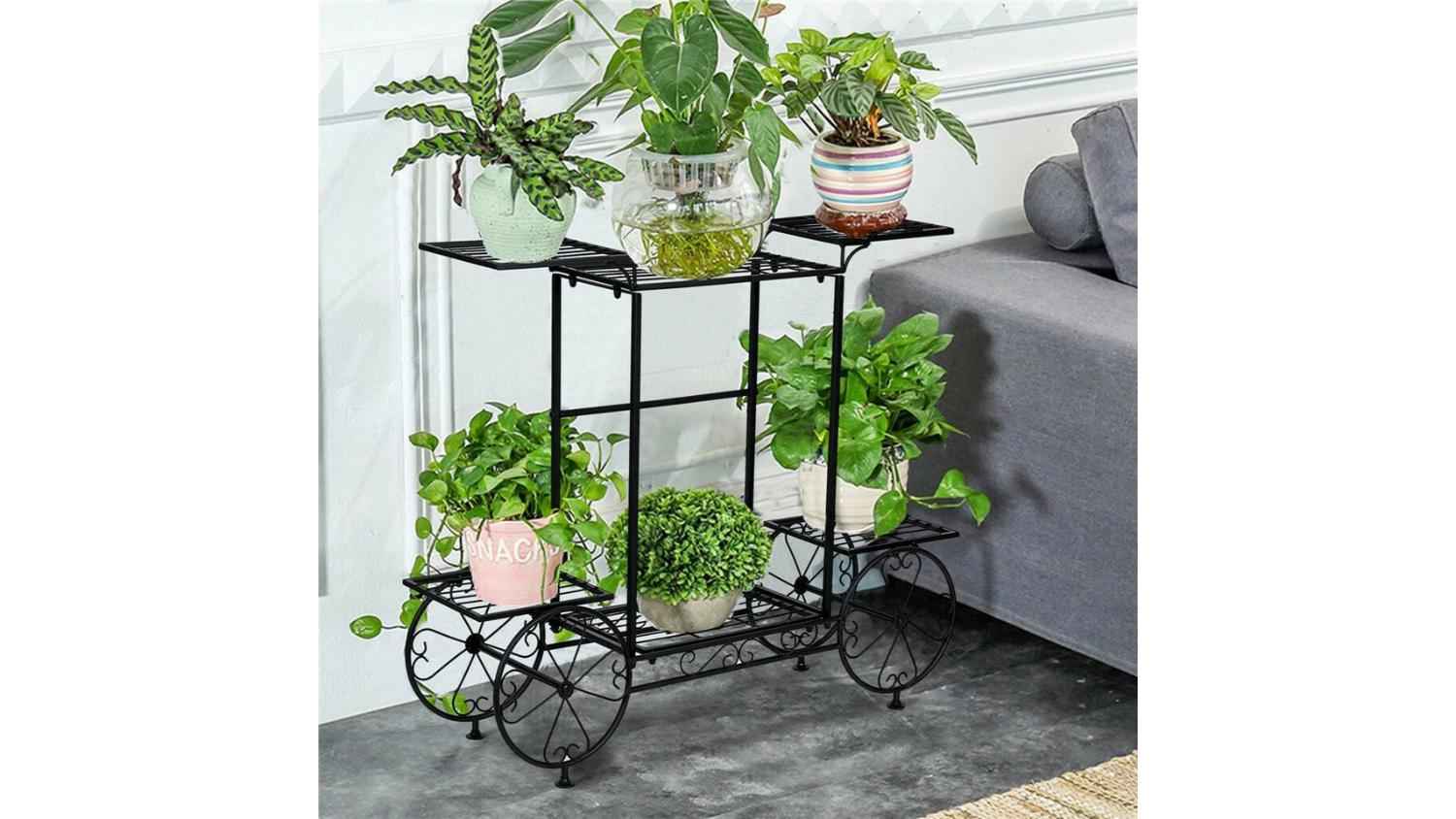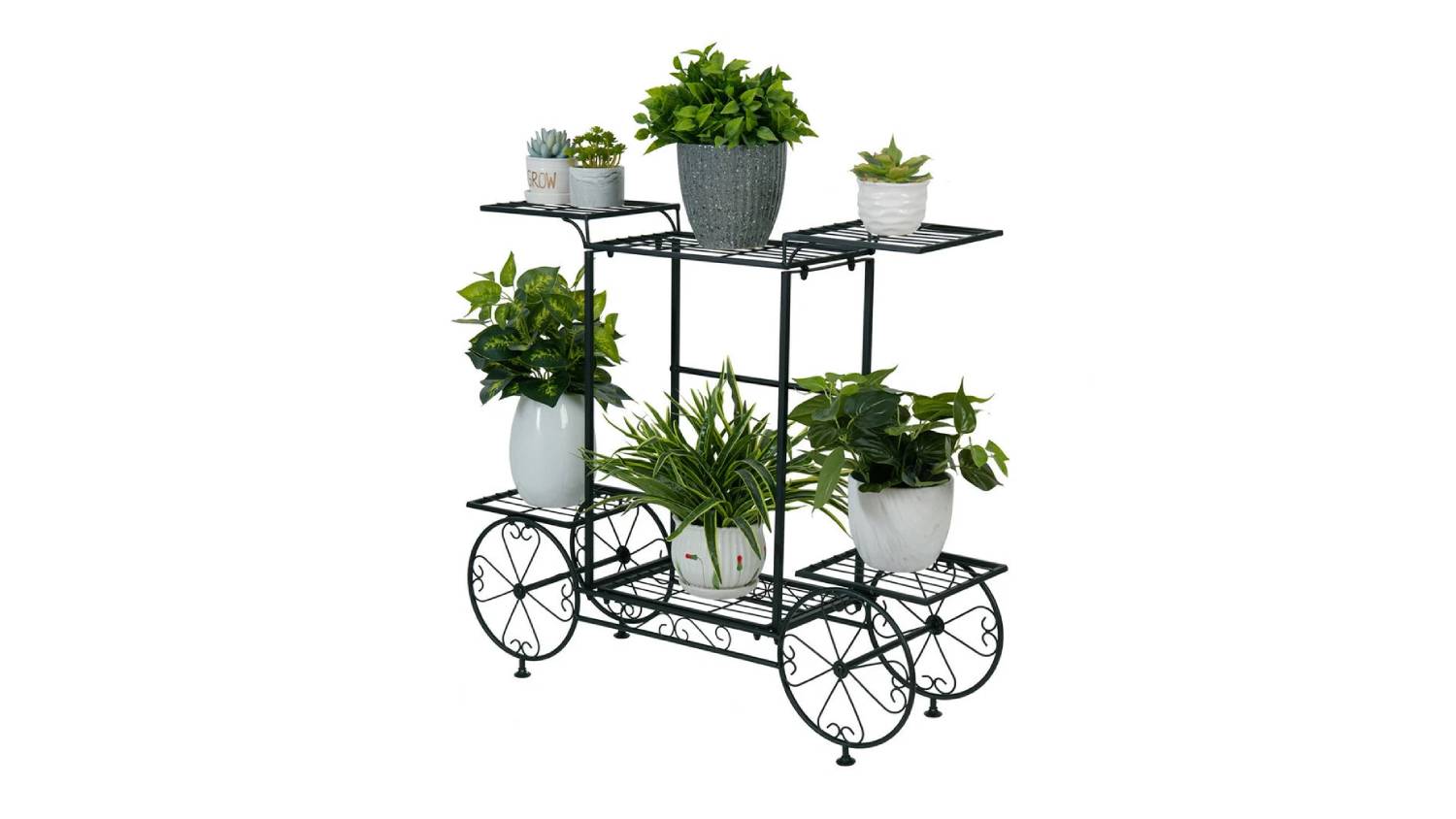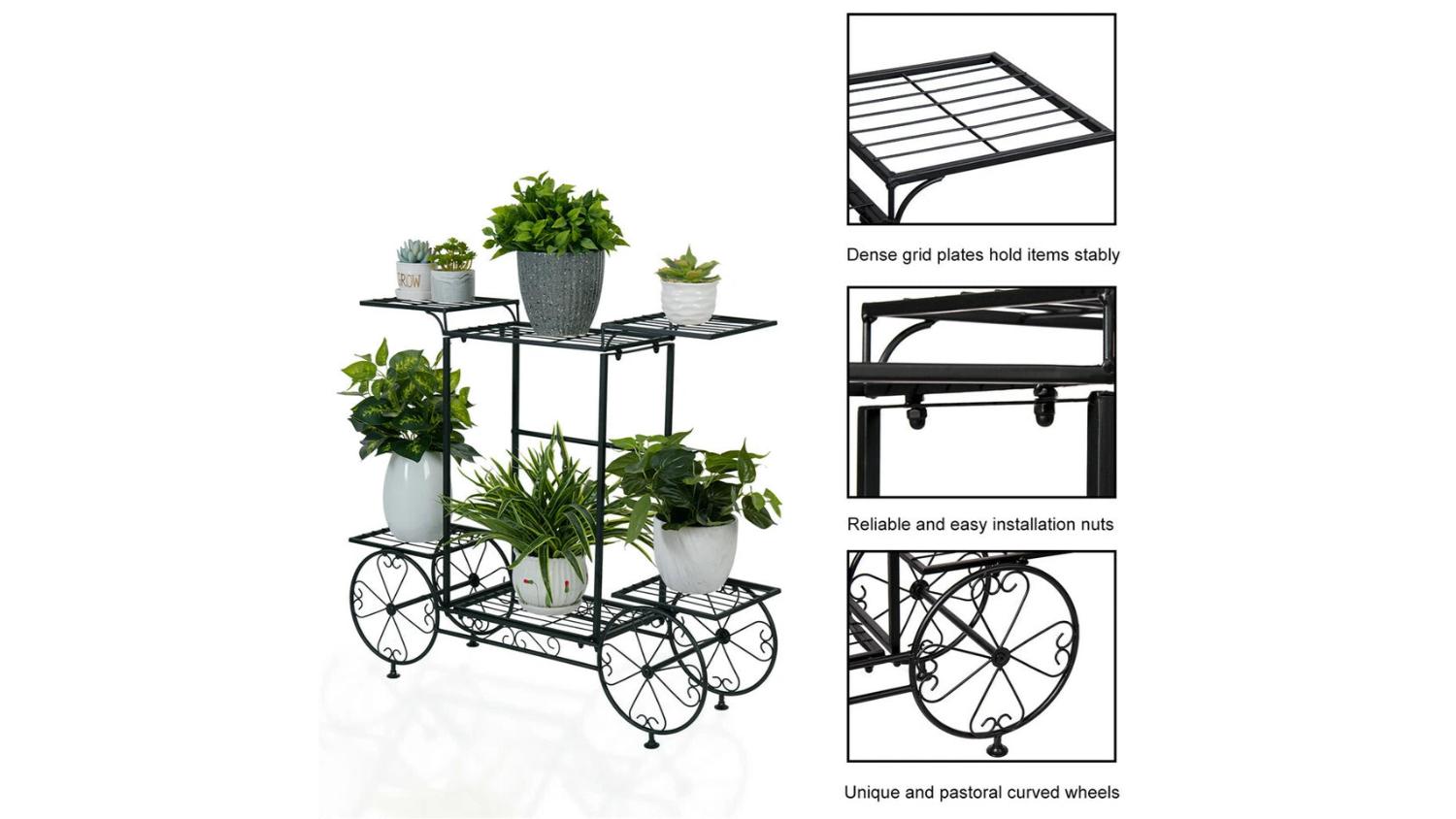 Give your plants a stylish home with the Pretty & Practical 6-Tier Heavy-Duty Metal Plant Stand. Designed for strength and stability, it features a welded upper tier, reinforced arches, and adjustable feet for balanced support. The durable iron frame and electroplated coating help prevent rust, while the six tiers make it easy to create a vibrant, modern plant display anywhere.