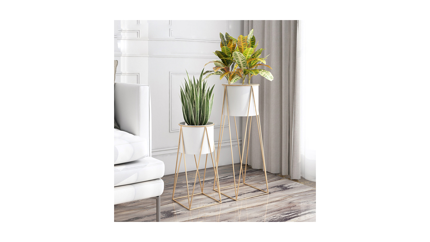 Soga 50cm Wire Metal Pot Plant Stand - Gold/White