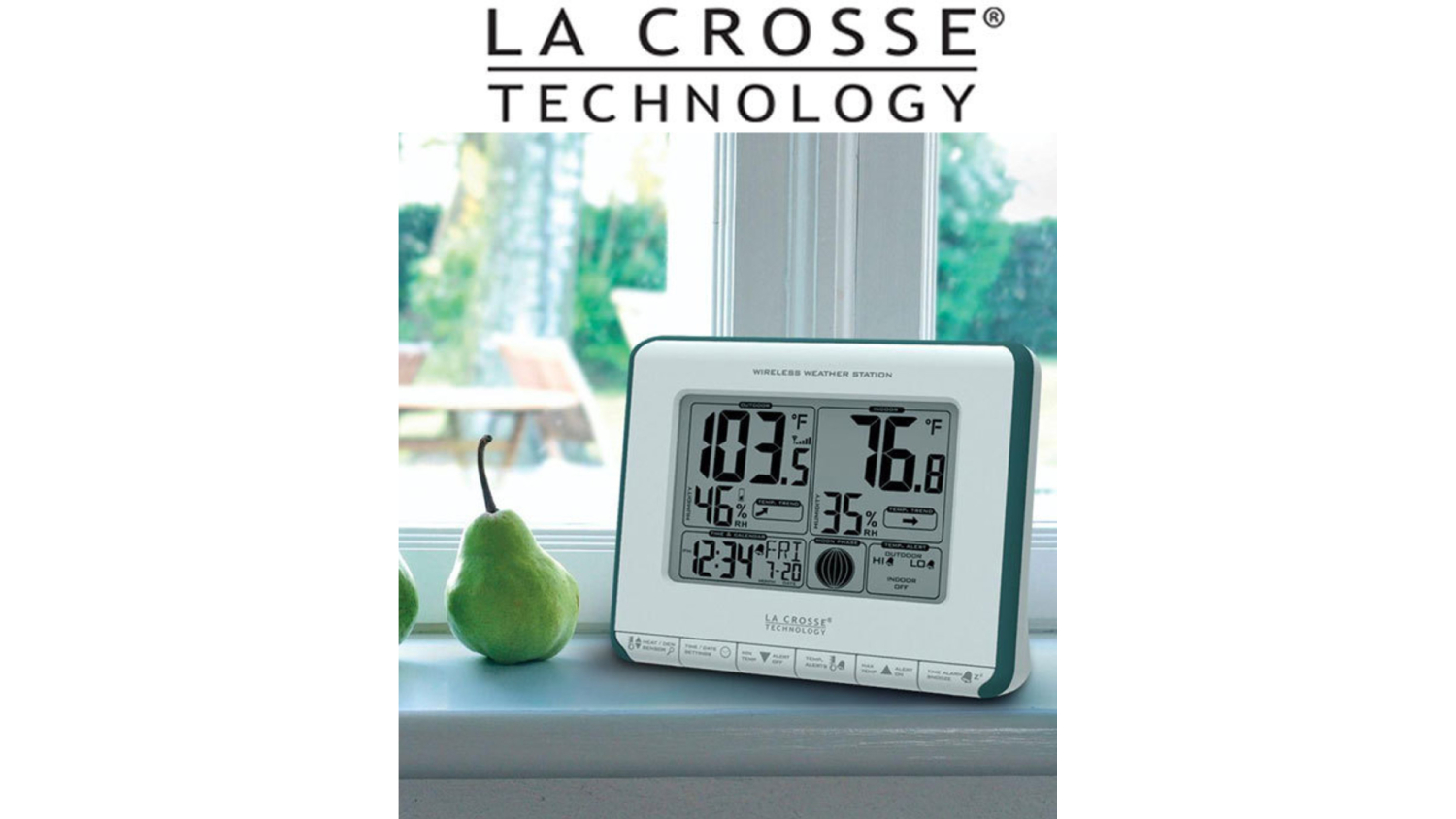 Your ultimate weather companion is here! The La Crosse Wireless Weather Station gives you access to accurate backyard weather updates as well as information about the day, time clock, and lunar phases. It lets you set alerts for temperature changes and enjoy bonus features like a digital time and date with snooze alarm, and moon phase. Furthermore, its 100m wireless range makes staying informed effortless.