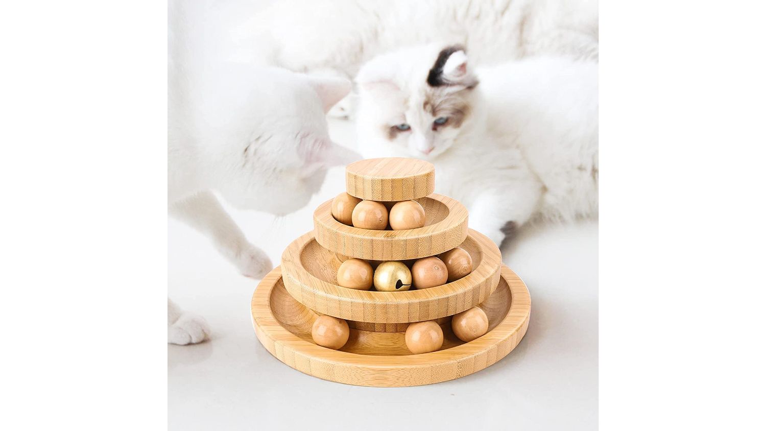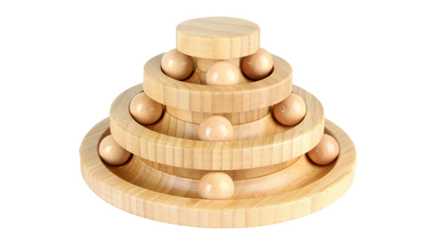 Captivate your cat's attention and satisfy their natural hunting instincts with the Fluff n' Stuff 3-Layer Wooden Track Cat Toy! The perfectly balanced proportions of the layers ensure the balls stay securely nestled in their channels, adding an element of challenge and excitement to the play. Not only does this toy provide endless amusement, but it also promotes exercise and a stronger bond between you and your furry companion.