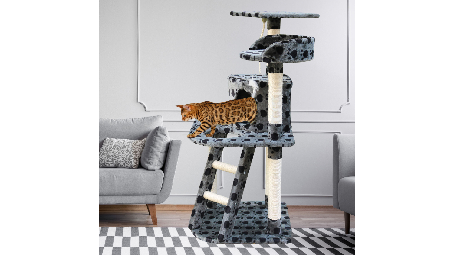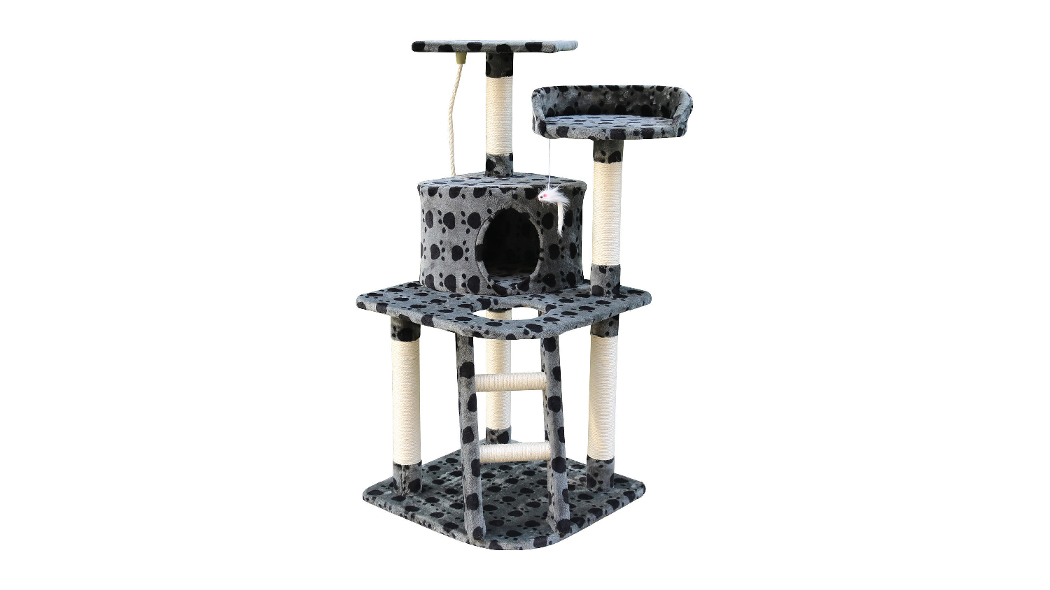 Unleash feline joy with the 4Paws Cat Tower & Scratching Post with Platforms, Hides— a 120cm cat tree offering play, nap, and scratching bliss. Crafted with a durable plush platform, natural sisal post, and an enclosed shelter, this all-in-one cat haven engages your cat's instincts, promotes exercise, and saves your furniture.