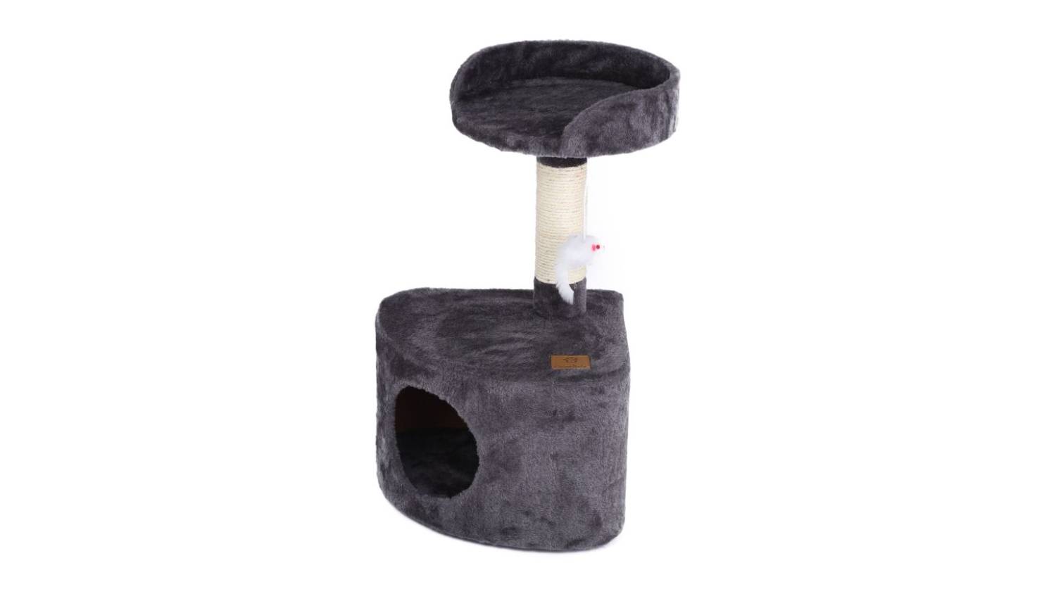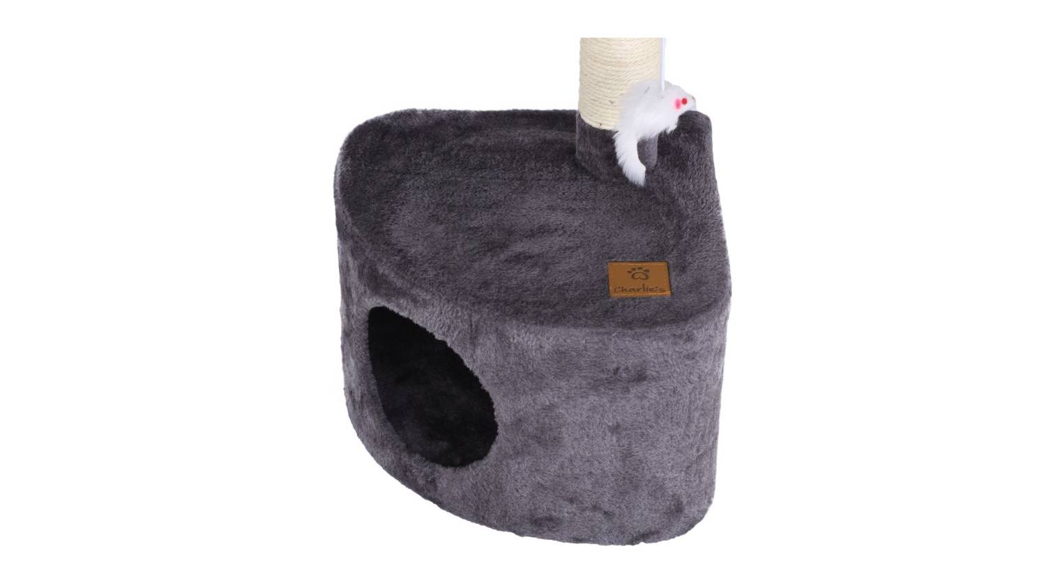 Treat your furry friend to the perfect hideaway to relax, lounge, and satisfy their natural curiosity with the Charlie's Cat Tree w/ Cave and Toy. The raised edge of this cat tree provides your four-legged companion with a delightful perch to observe their kingdom from on high. Crafted from a premium blend of polyester and sisal, it ensures a long-lasting, robust experience that can withstand the most enthusiastic scratching sessions. Say goodbye to ruined curtains, worn-out carpets, and scratched furniture!