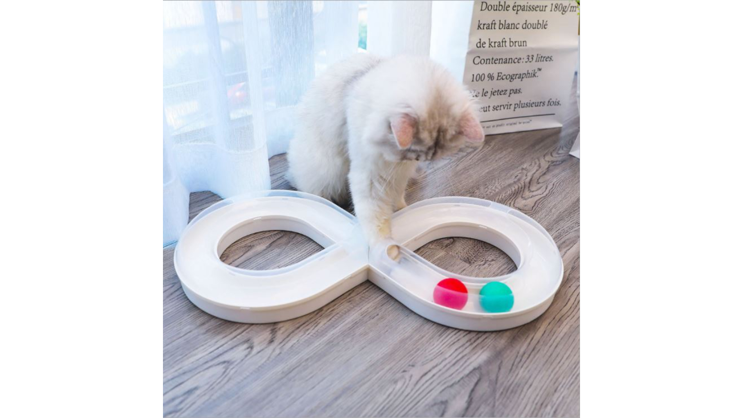 Cats are curious creatures, and our Carno Figure 8 Racing Track Cat Toy is here to fulfil their need for exploration and entertainment! The Figure 8 racing track is designed to be one continuous loop containing two coloured balls. It allows your cat to chase and move, providing hours of engaging playtime.