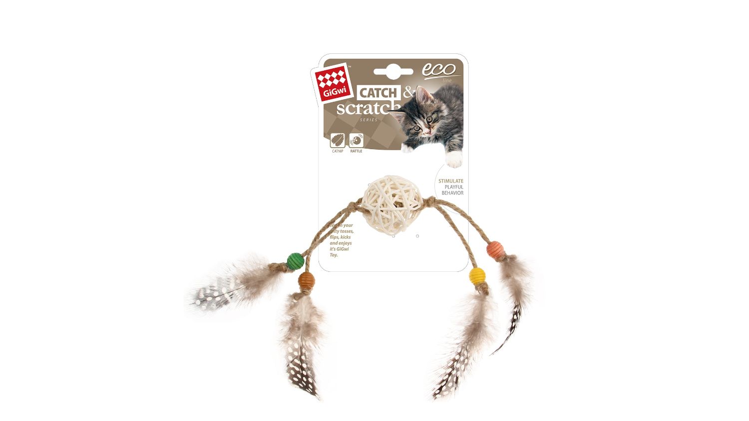 Give your feline friend the ultimate playtime experience with the Gigwi Catch & Scratch Bell and Feather Set! This set is designed to satisfy your cat's natural instincts and keep them entertained for hours. As your cat tosses, flips, kicks, and plays, you can keep them physically active and mentally sharp.