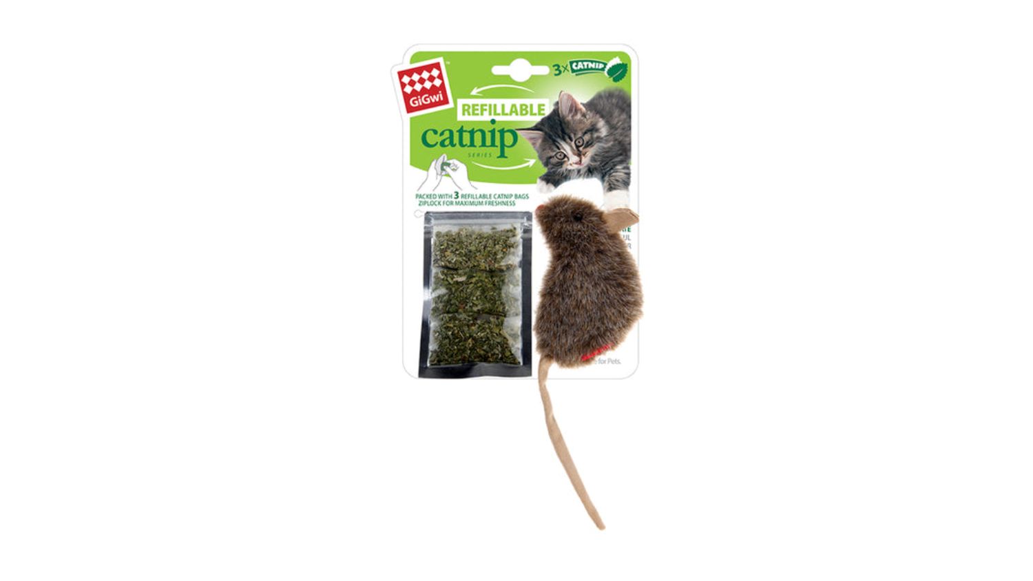 Introduce the Gigwi Refillable Catnip Mouse Cat Toy to your felines and watch their excitement soar! This toy keeps playtime fresh and enticing. Watch as your cat flips, kicks, and chews the interactive toy. It will surely become your cat's new favourite!