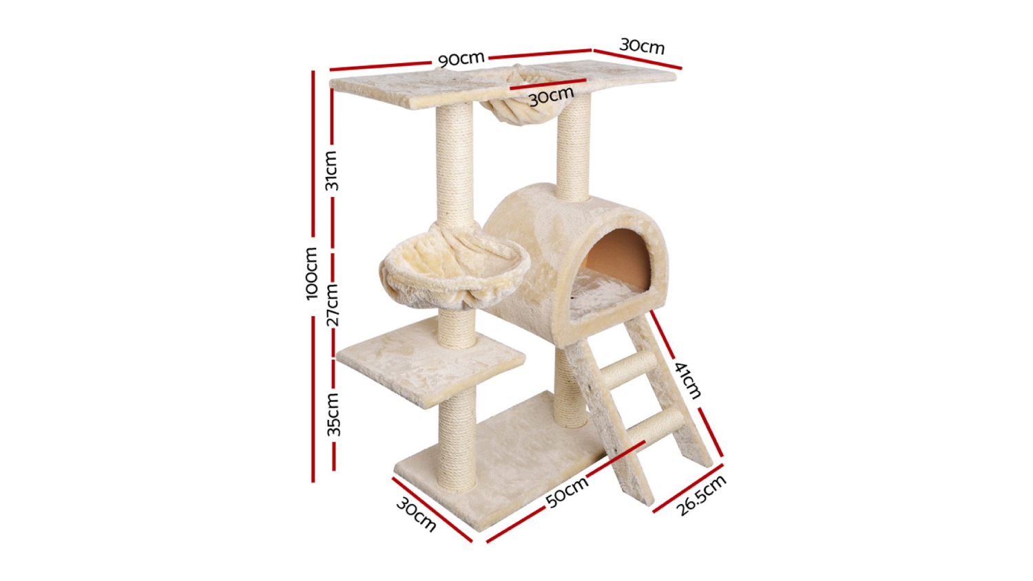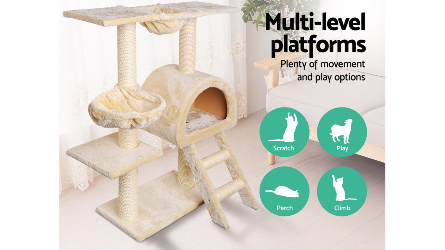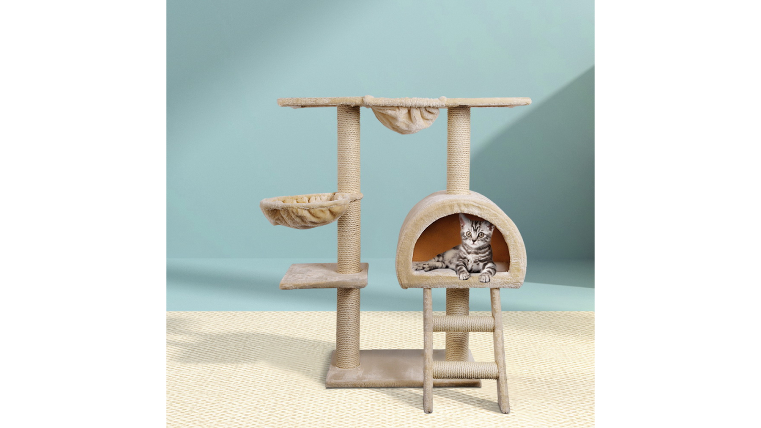 i.Pet Cat Condo with Scratching Post & Bed 100cm - Beige