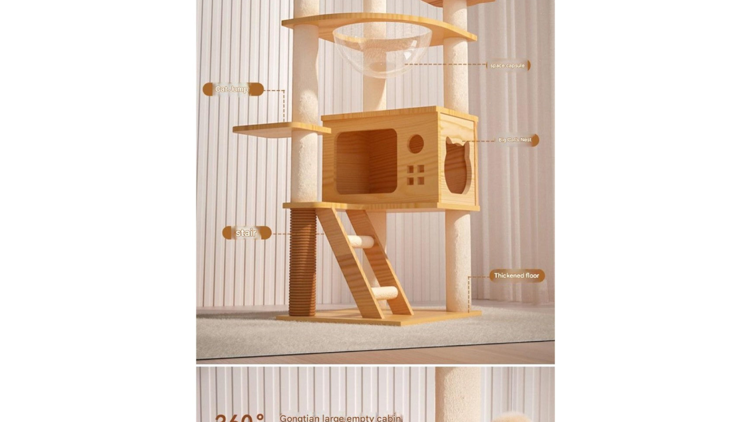 Give your pet the ultimate retreat with the Kmall Elegant Cat Tree with Space Bowls, Hides, and Pompoms. Crafted from premium MDF, this stable 130cm cat tower features multi-layered platforms and durable jute rope posts for scratching. It offers a secure, spacious hideaway for privacy and a unique, transparent space bowl for lounging and observation. Plus, the stylish wood finish and compact design ensure it blends seamlessly into any modern home.