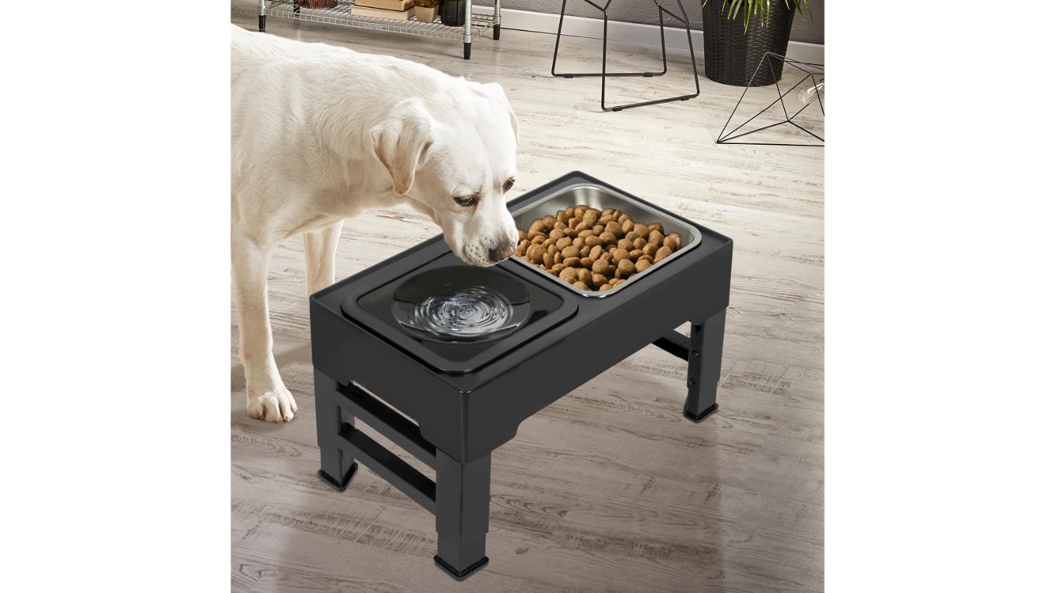 PaWz Adjustable Elevated Pet Feeder Stand with Food Dish, Non-Spill Water Bowl