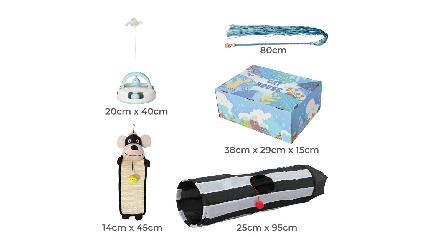 The PaWz Cat Toy Bumper Pack is the ultimate playtime paradise! This 5-piece bundle includes a cosy tunnel, a scratching cardboard box, and fun sisal toys, so your feline friend will be entertained for hours. Crafted with 100% safe materials, it's the perfect way to keep your cat active and happy. Watch them pounce, leap, and scratch their way to purr-fect satisfaction.