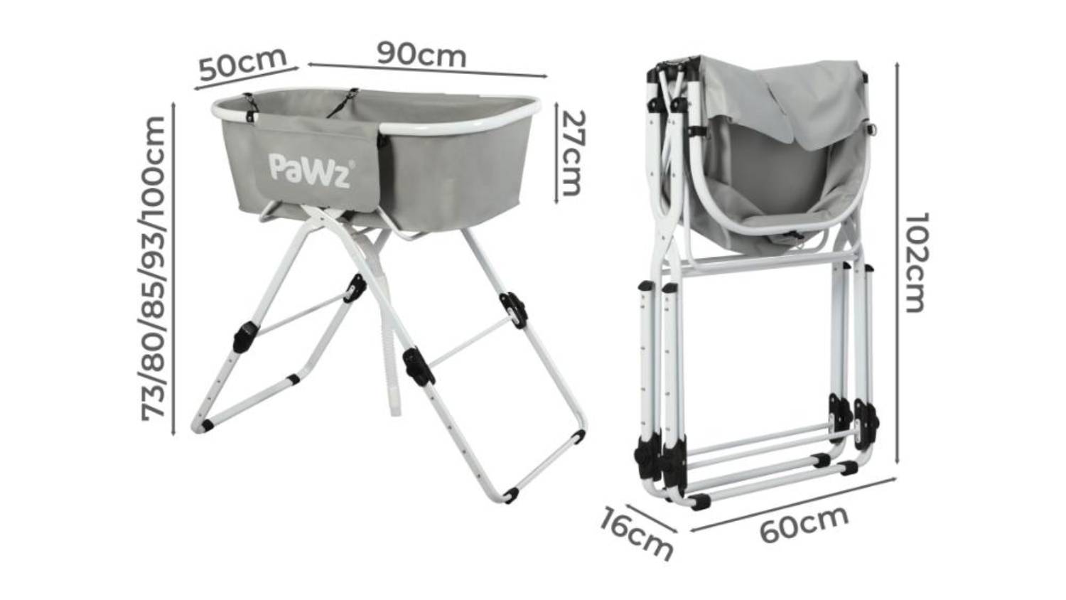 Make bath time stress-free with the PaWz Elevated Pet Bath Basin with Drainage Hose. Designed for convenience, this basin features 5 adjustable heights, a reinforced metal frame, and a spacious 60kg capacity. Keep your pet cool in summer by adding ice to the water, or use it for hassle-free grooming sessions.