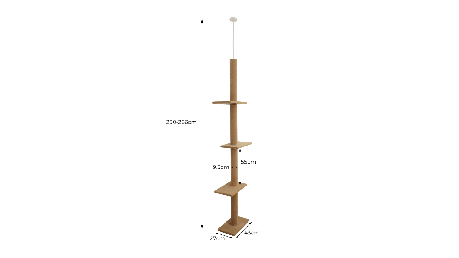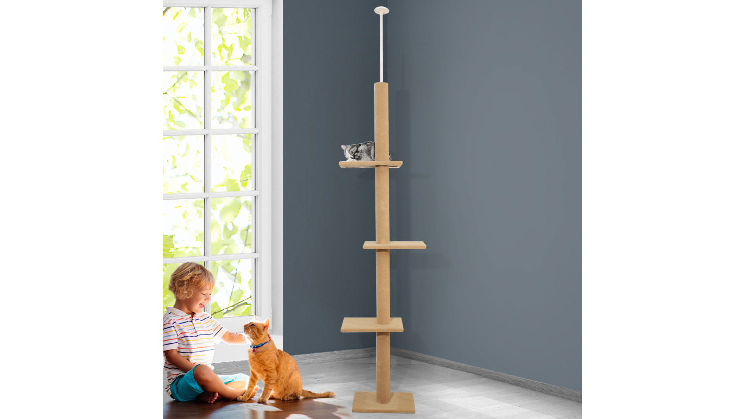 Say hello to your cat’s new favourite playground—the PaWz Floor-to-Ceiling Cat Pole! With adjustable height, plush cover, and multiple platforms, it’s the perfect mix of comfort and fun for your feline friend. The unit is also built tough with P2-grade particleboard and wrapped in a soft 220gsm material.