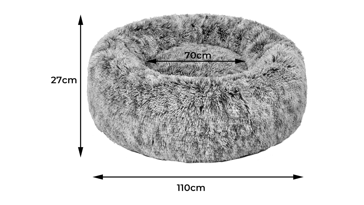 PaWz Fluffy Washable Donut Calming Pet Bed 110 x 110 x 27cm - Charcoal