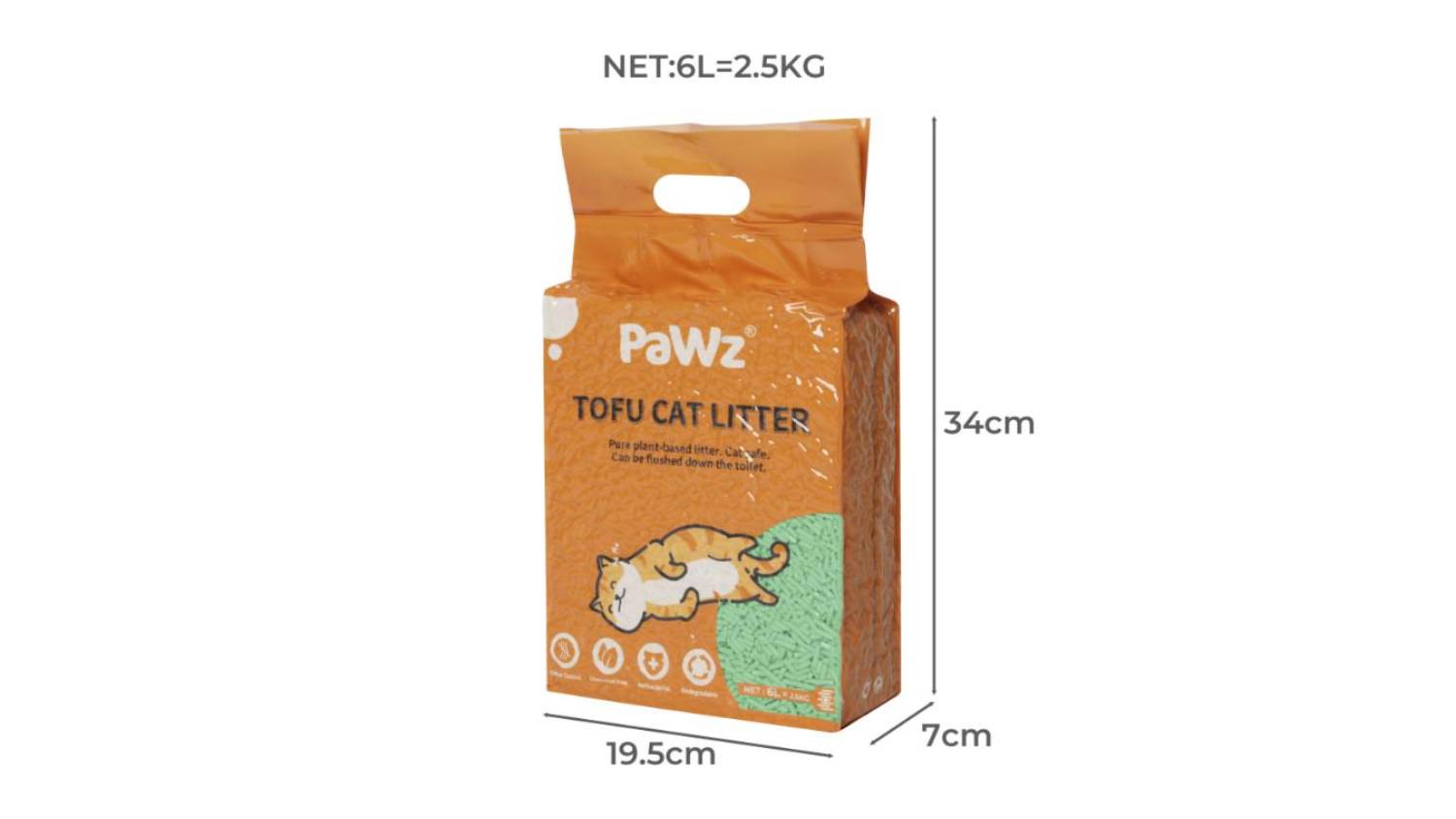 Say goodbye to smelly litter boxes with the PaWz Flushable Tofu Cat Litter 6L 4pcs. Made from 100% biodegradable soybean fibre, this litter quickly absorbs liquids and clumps instantly to minimise odours. Simply scoop and flush for easy cleanup. Refresh your litter every month for a healthier, happier furbaby!