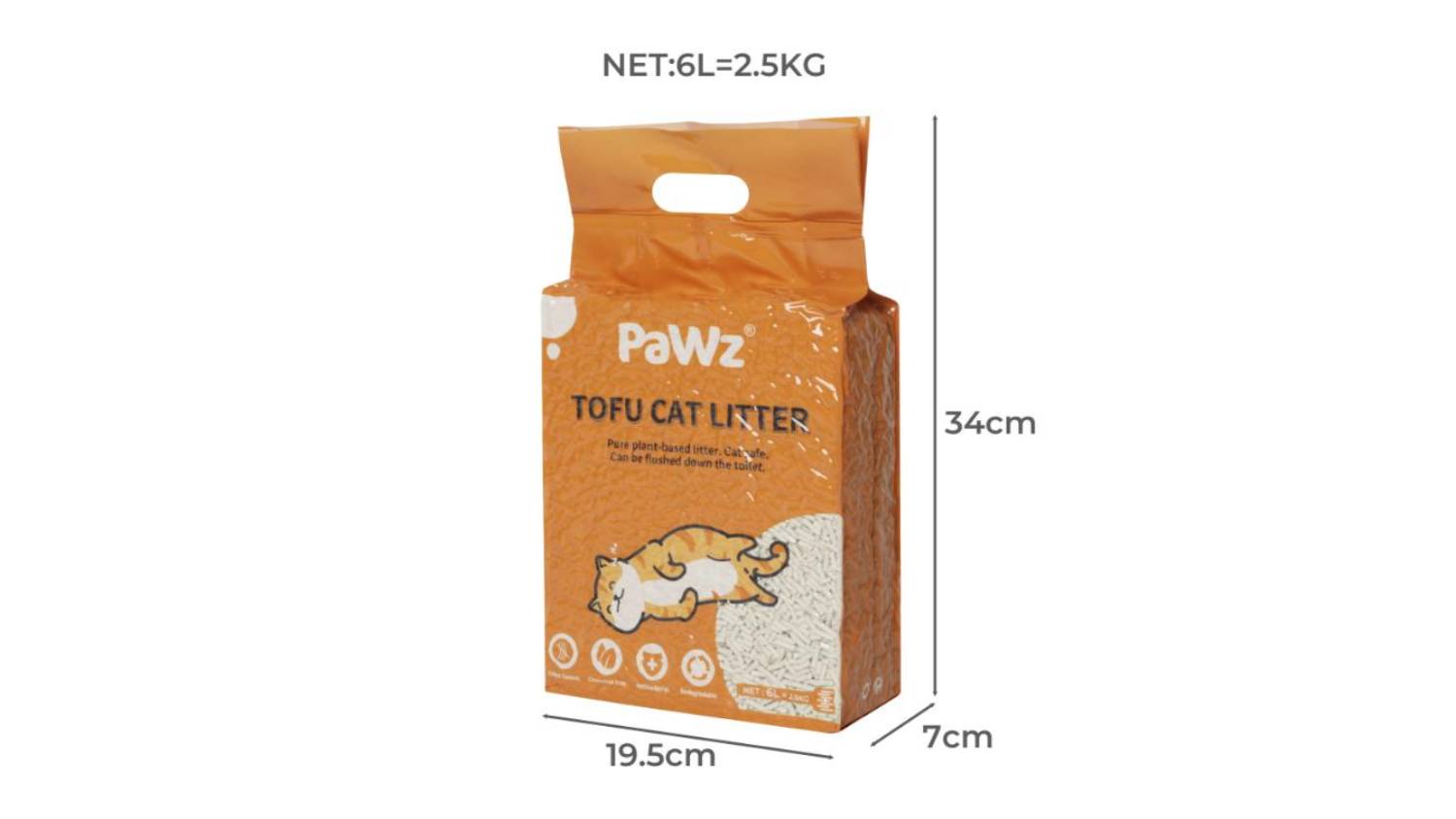 Say goodbye to smelly litter boxes with the PaWz Flushable Tofu Cat Litter 6L 4pcs. Made from 100% biodegradable soybean fibre, this litter quickly absorbs liquids and clumps instantly to minimise odours. Simply scoop and flush for easy cleanup. Refresh your litter every month for a healthier, happier furbaby!