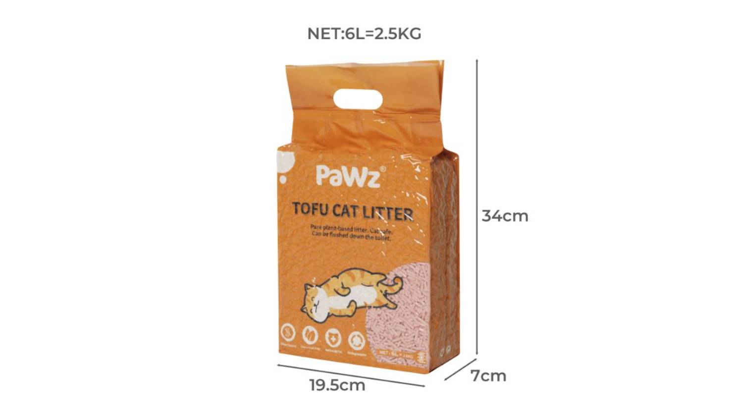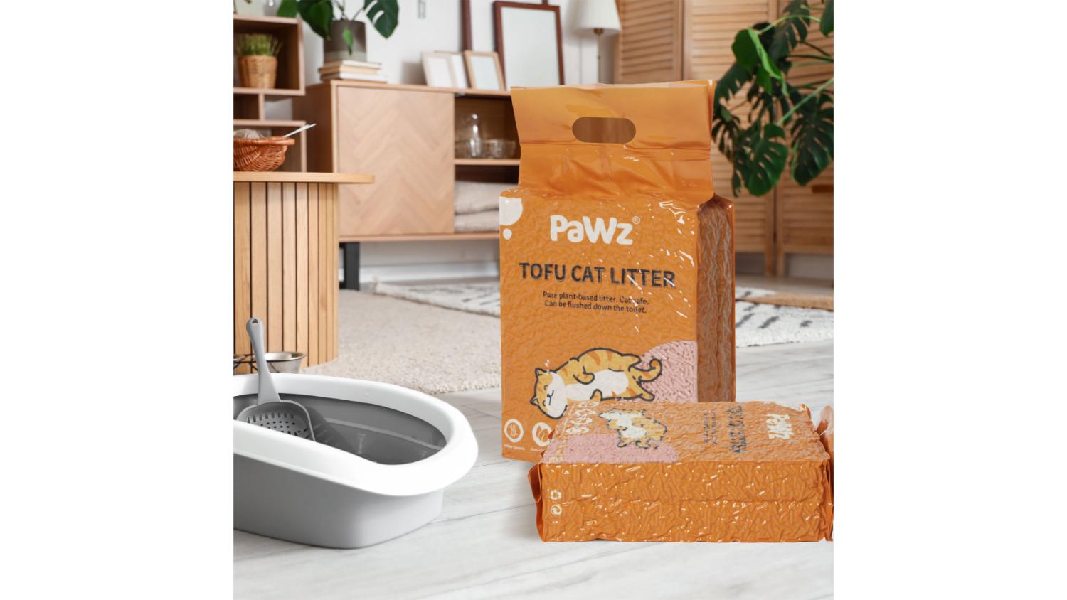 Say goodbye to smelly litter boxes with the PaWz Flushable Tofu Cat Litter 6L 4pcs. Made from 100% biodegradable soybean fibre, this litter quickly absorbs liquids and clumps instantly to minimise odours. Simply scoop and flush for easy cleanup. Refresh your litter every month for a healthier, happier furbaby!