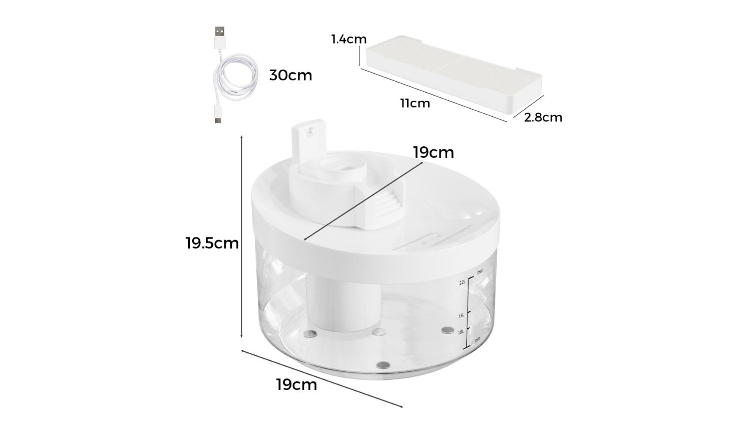 Keep your pet hydrated with the PaWz Illuminated USB Powered Pet Water Fountain 2.2L and Replacement Filter. Featuring a three-stage filtration system, this sensor-activated dispenser releases water only when necessary, while the automatic circulation keeps the water fresh and prevents stagnation. Moreover, it is made from food-grade PET material, boasts a silent operation, and is equipped with an adjustable water pump. Plus, the included replacement filter makes maintenance a breeze.