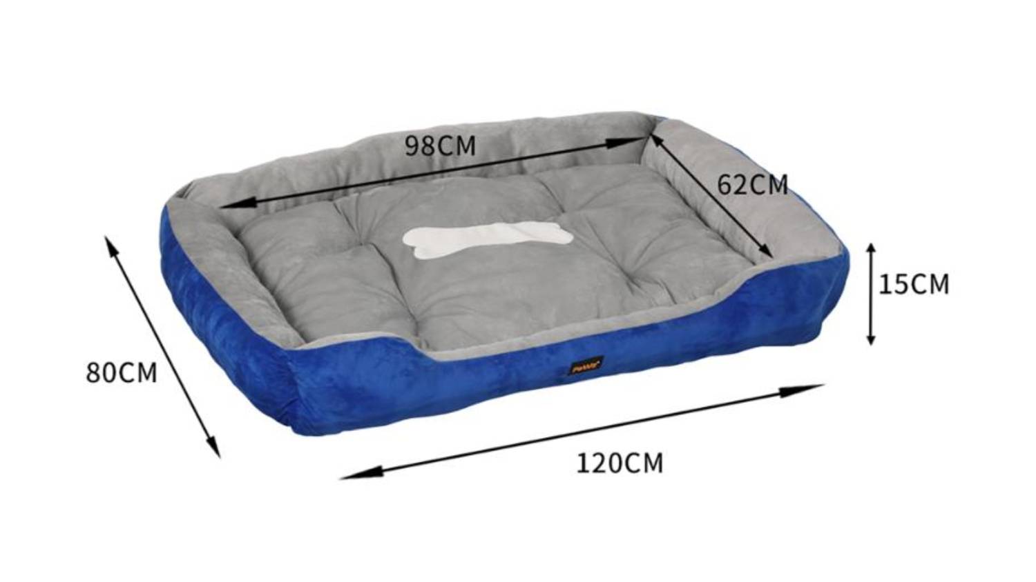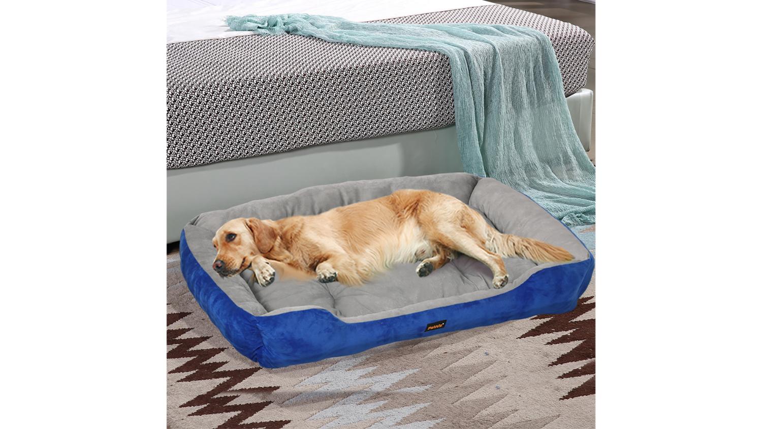 PaWz Plush Dog Bed with Bolsters 120 x 80 x 15cm - Blue