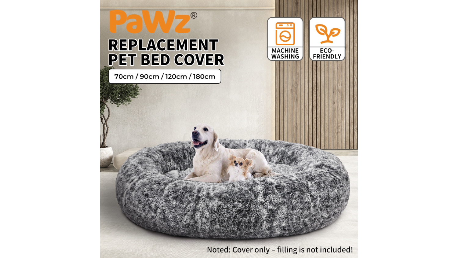 Pamper your fur baby with the PaWz Premium Donut Calming Pet Bed Cover! This cover fits snugly with your existing 90 x 90cm donut pet bed, elevating its look and feel. It has a plush surface, a non-slip, and a waterproof base for comfort and stability. Use it to replace the colour of your pet bed, or as a spare cover if the other one is in the washing machine.
