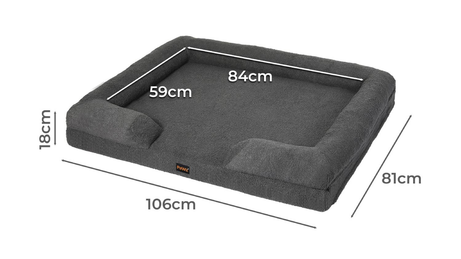 PaWz Premium Memory Foam Boucle Pet Bed with Bolsters 135 x 106cm - Grey