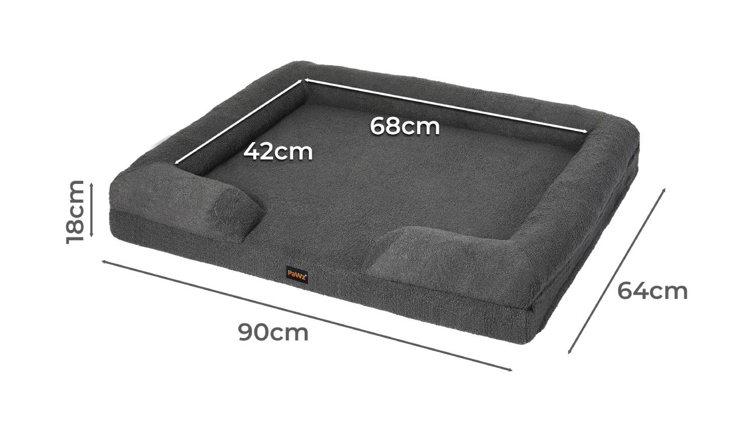 PaWz Premium Memory Foam Boucle Pet Bed with Bolsters 90 x 64cm - Grey