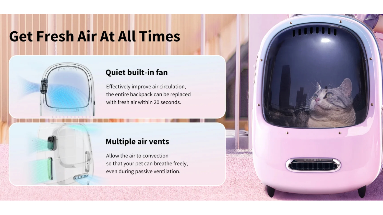 Travelling with your kitty just got easier with the PetKit EverTravel Pet Backpack Carrier in Pink. Built with a lightweight, waterproof shell, this carrying solution keeps your cat protected and comfortable on walks, hikes, or everyday outings. Its cute aerodynamic design offers impressive airflow while holding its shape, giving your pet a safe, cosy ride wherever you go. It’s the stylish, stress‑free way to explore with your furry friend.