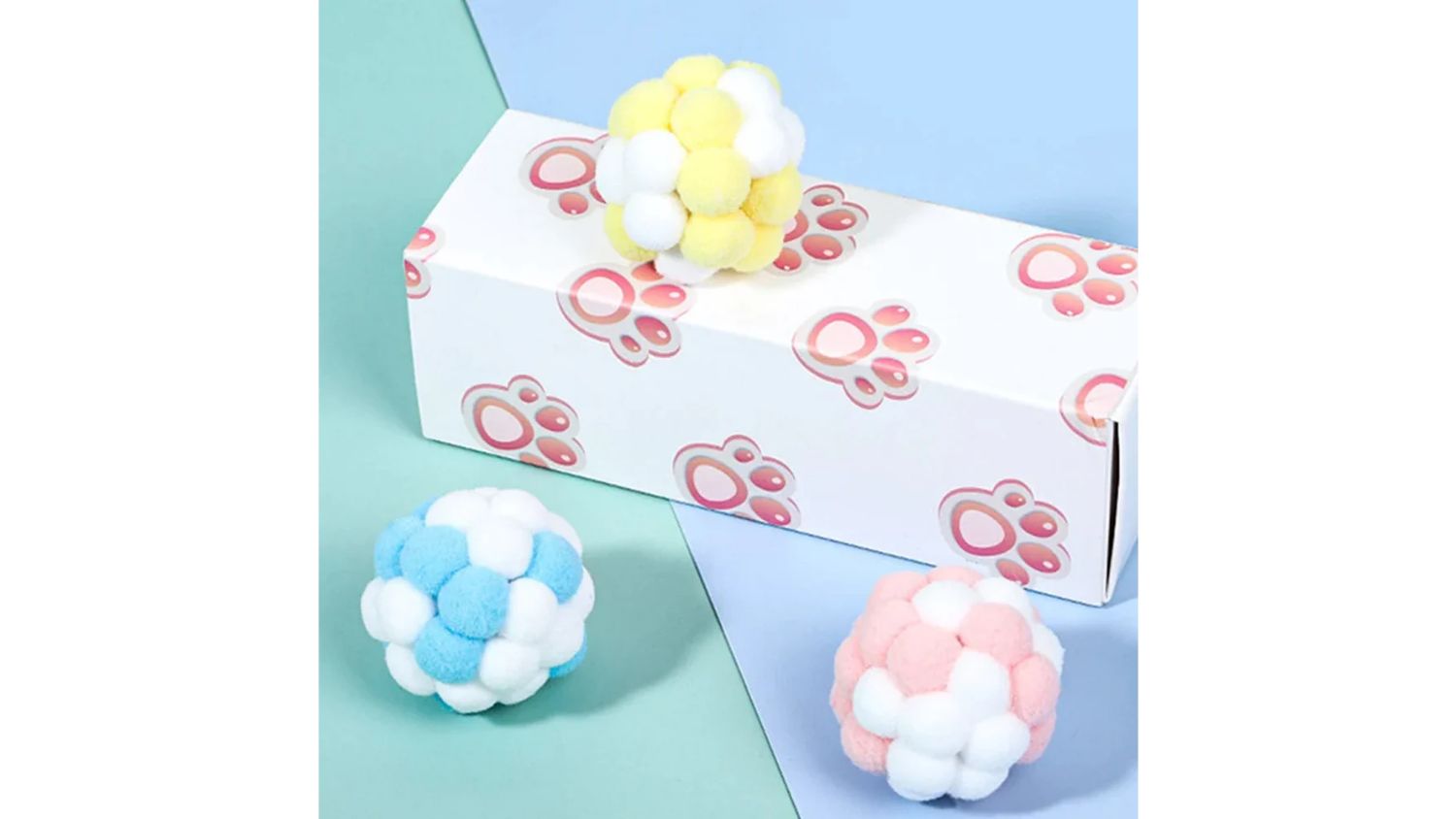 Experience endless hours of fun and excitement as your pet pounces, chases, and swats the Fluff n' Stuff Pompom Ball Set! This captivating set includes 3 different coloured pompom balls, each one carefully crafted to ignite your pet's curiosity and keep them engaged for hours on end. And, to top it all off, it includes a cute storage box, ensuring these playful treasures stay safe and organised.