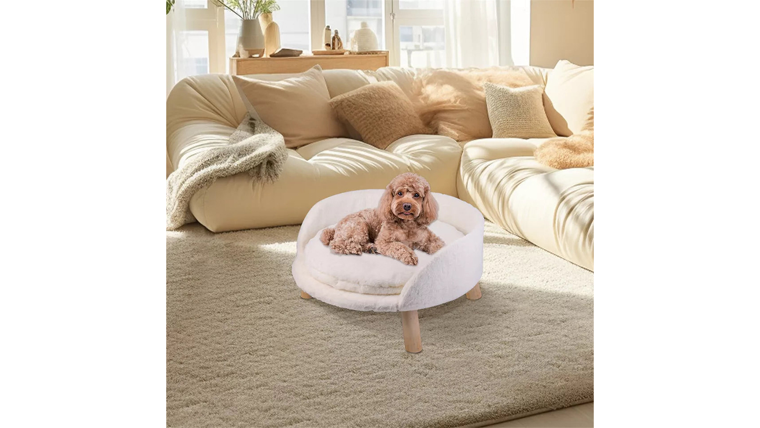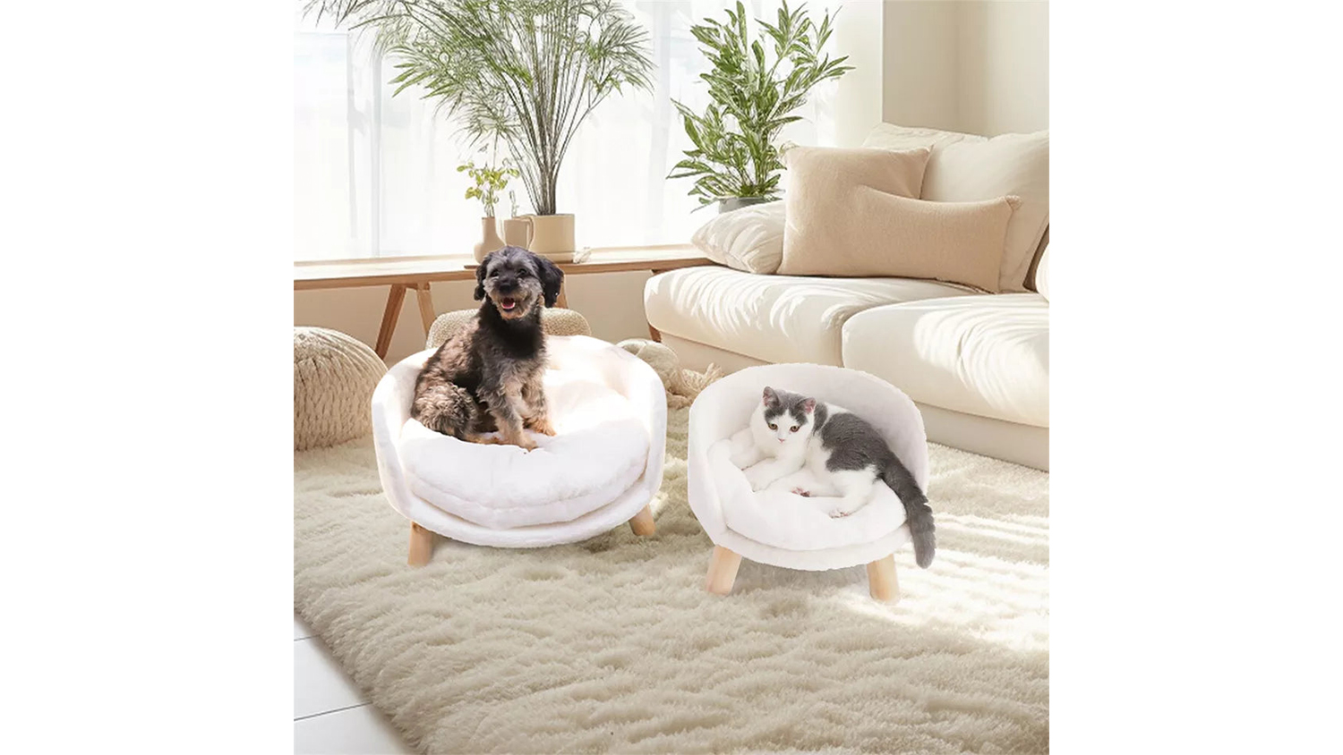 Keep your fur baby off hard, uncomfortable floors with this Pretty & Practical Cat Sofa with Cushion. Built with a durable composite board frame and soft plush fabric, this pet sofa provides a warm and cosy resting space. It also features a waterproof inner cushion that keeps the pad protected, while the sturdy anti-slip wood legs help the sofa stay steady.