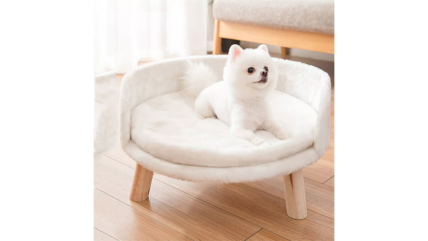 Keep your fur baby off hard, uncomfortable floors with this Pretty & Practical Cat Sofa with Cushion. Built with a durable composite board frame and soft plush fabric, this pet sofa provides a warm and cosy resting space. It also features a waterproof inner cushion that keeps the pad protected, while the sturdy anti-slip wood legs help the sofa stay steady.