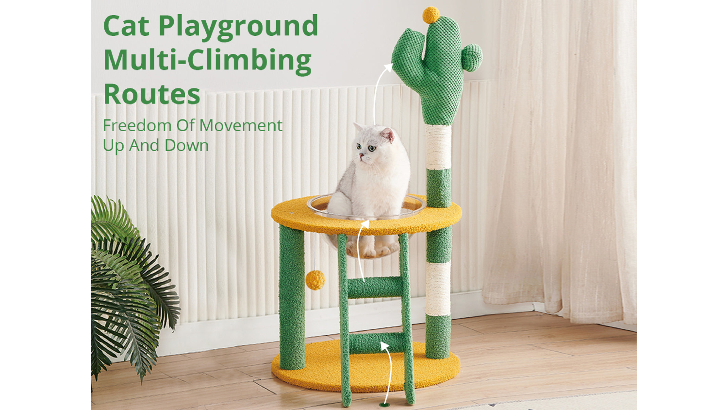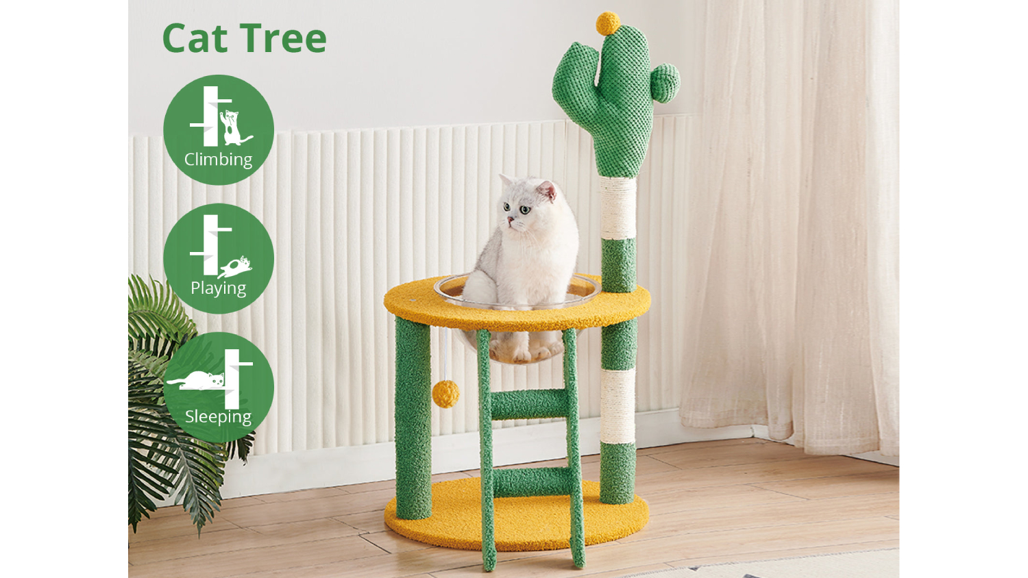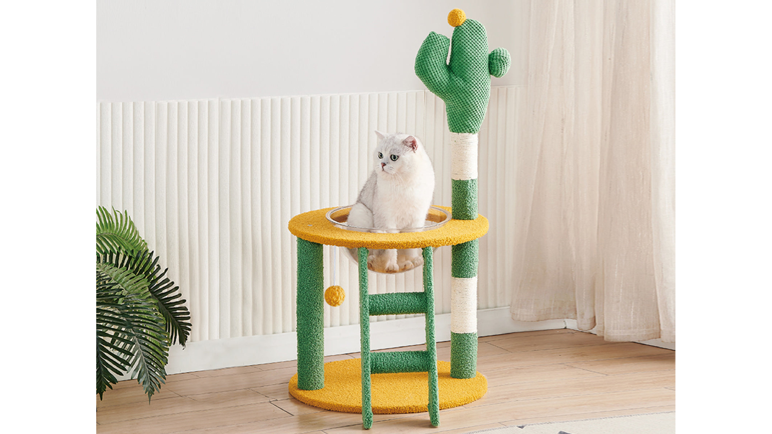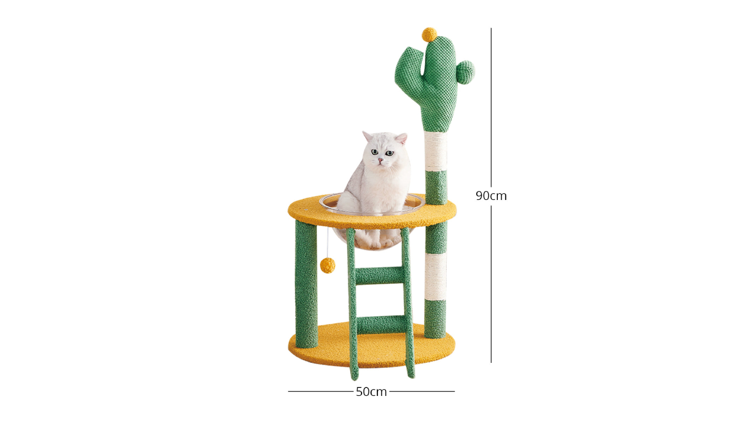 TSB Living Themed Cat Nap Tree with Panoramic Bowl, Pompom - Saguaro Cacti