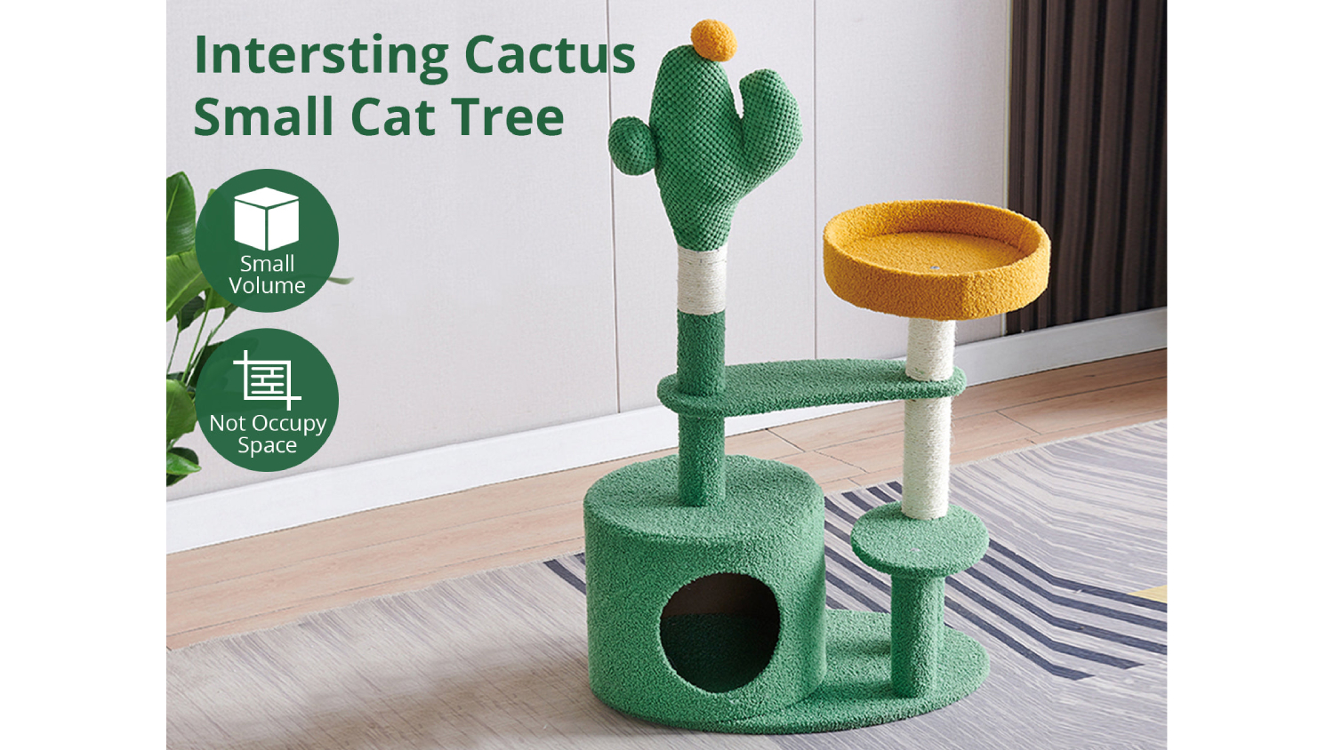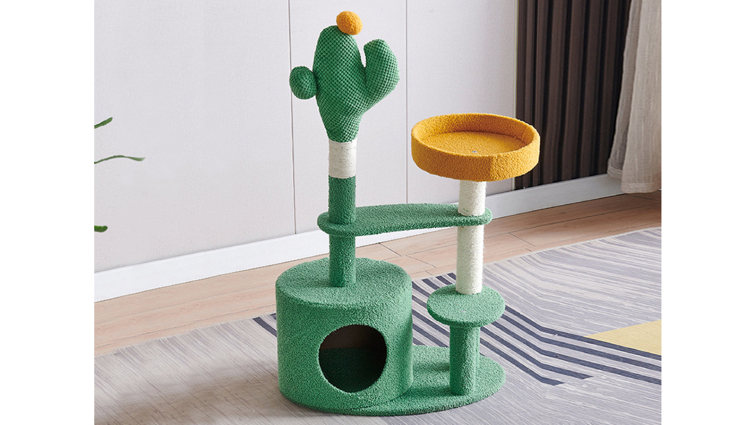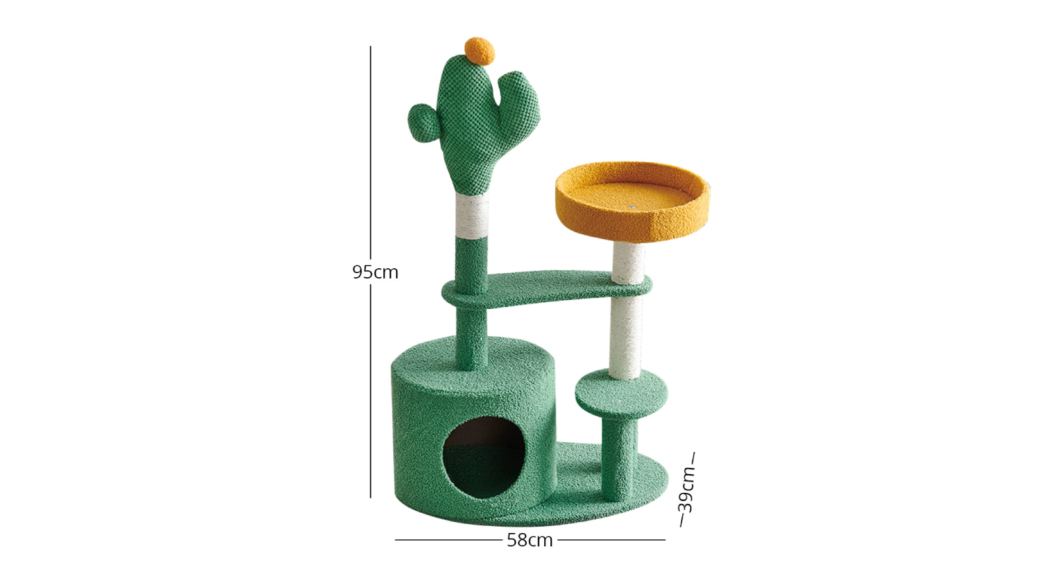 TSB Living Themed Cat Tree with Hidey Hole, Pompom 95cm - Saguaro Cacti