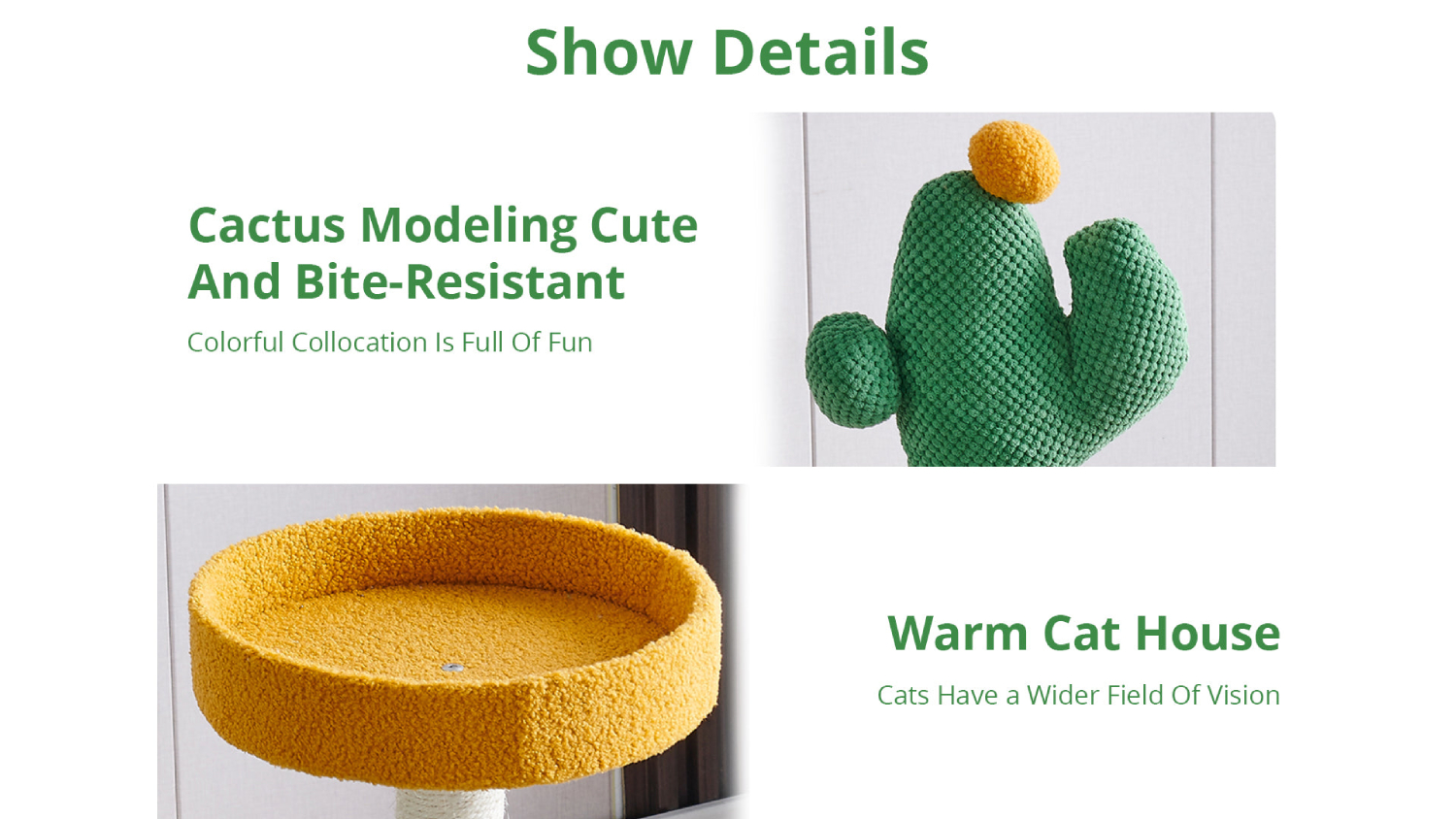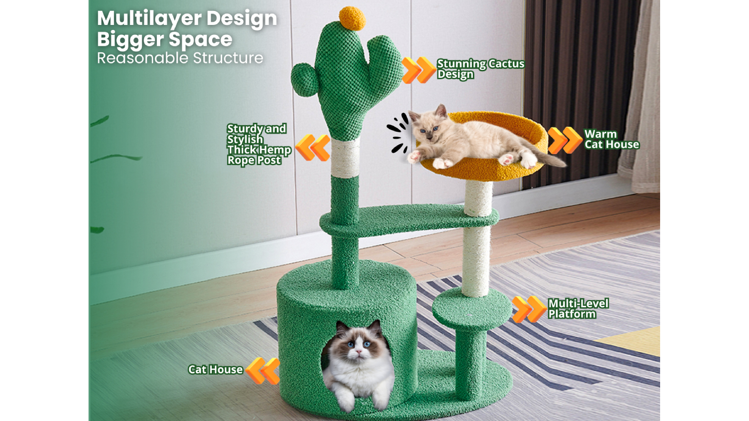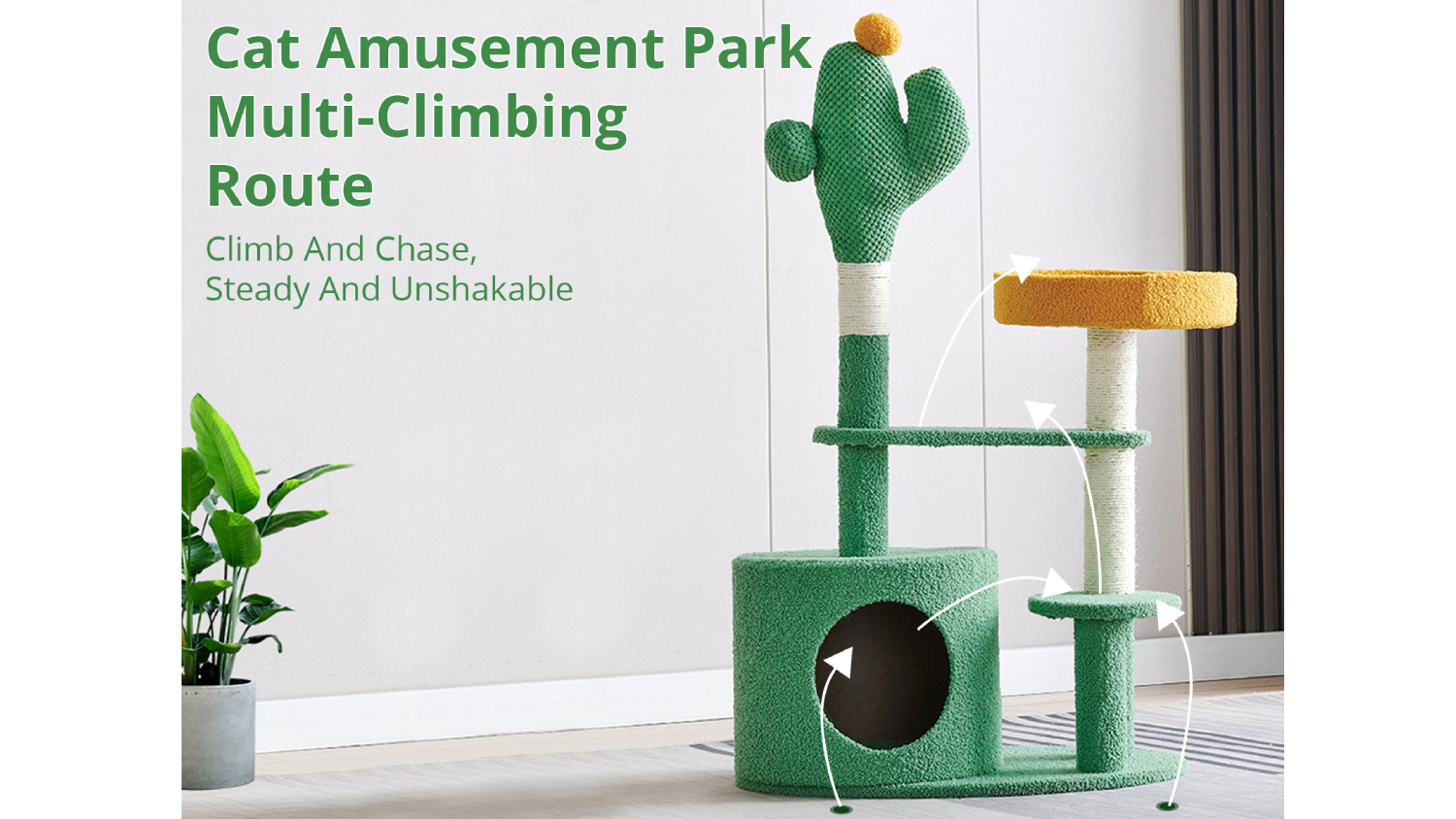 TSB Living Themed Cat Tree with Hidey Hole, Pompom 95cm - Saguaro Cacti