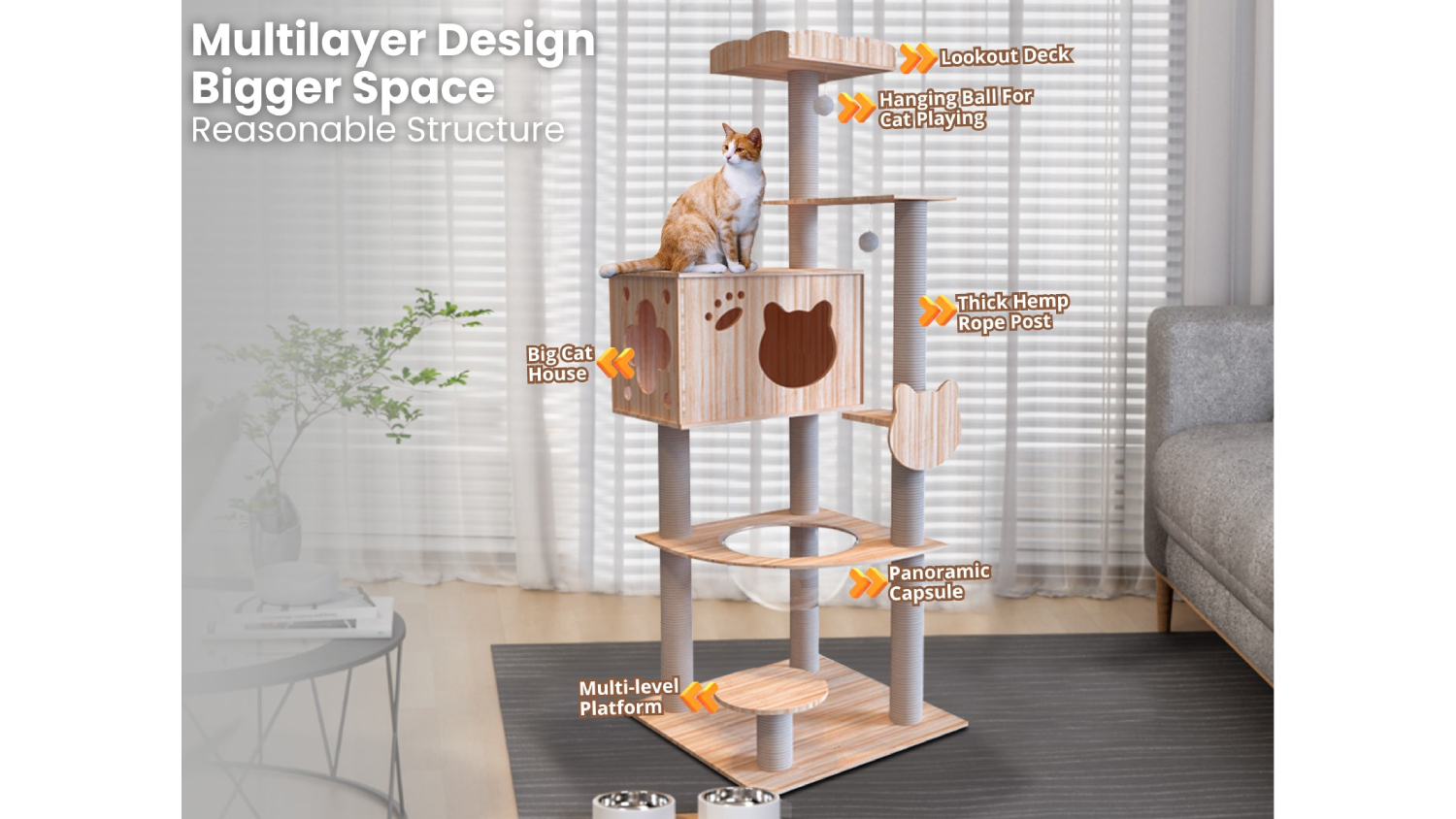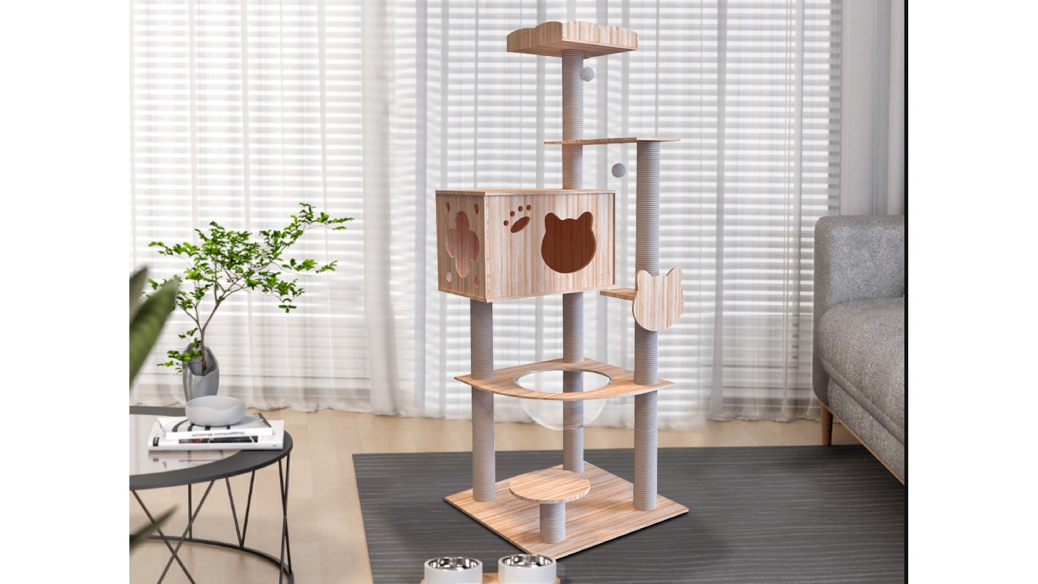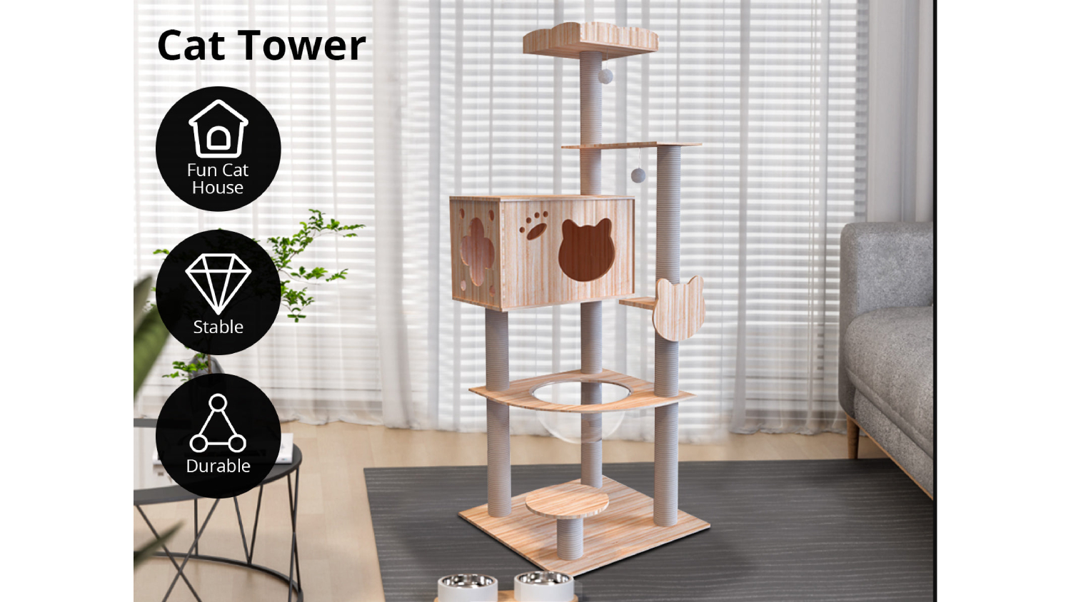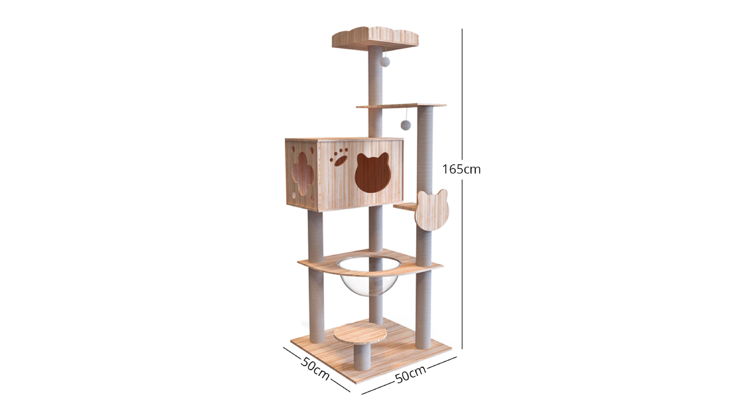 Spoil your feline friend with TSB Living Wooden Cat Tree with Scratching Posts, Panoramic Bowl, and Hidey Houses! This all-in-one haven features multiple platforms, a cosy hideout, and a panoramic capsule for your cat to explore. The durable wood construction and eco-friendly sisal scratching posts ensure long-lasting enjoyment and protection for your furniture.