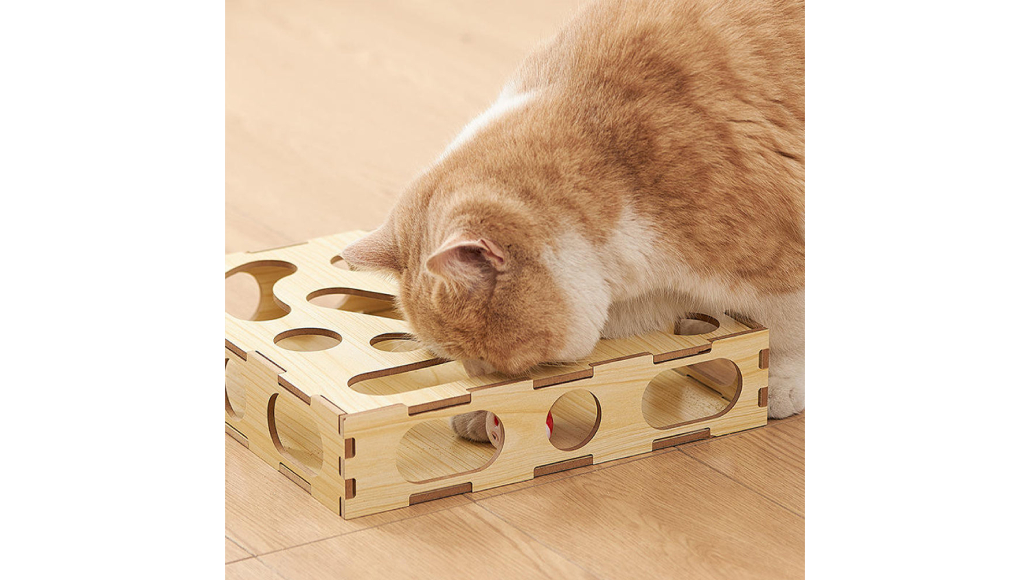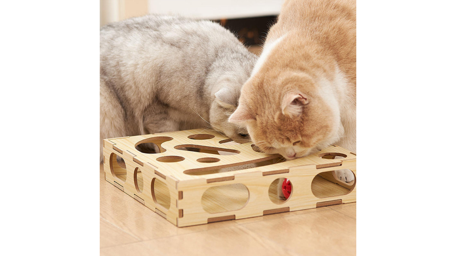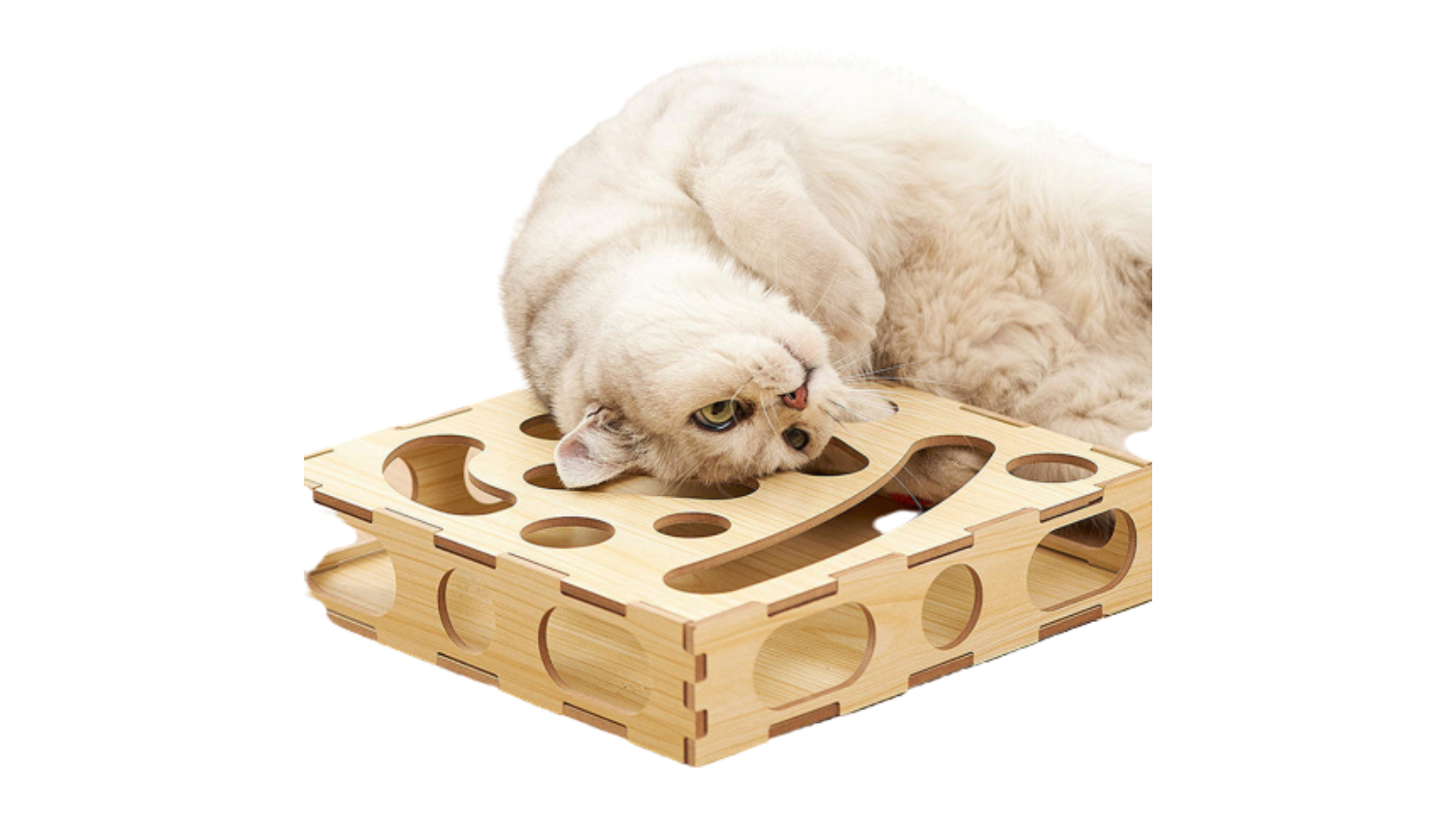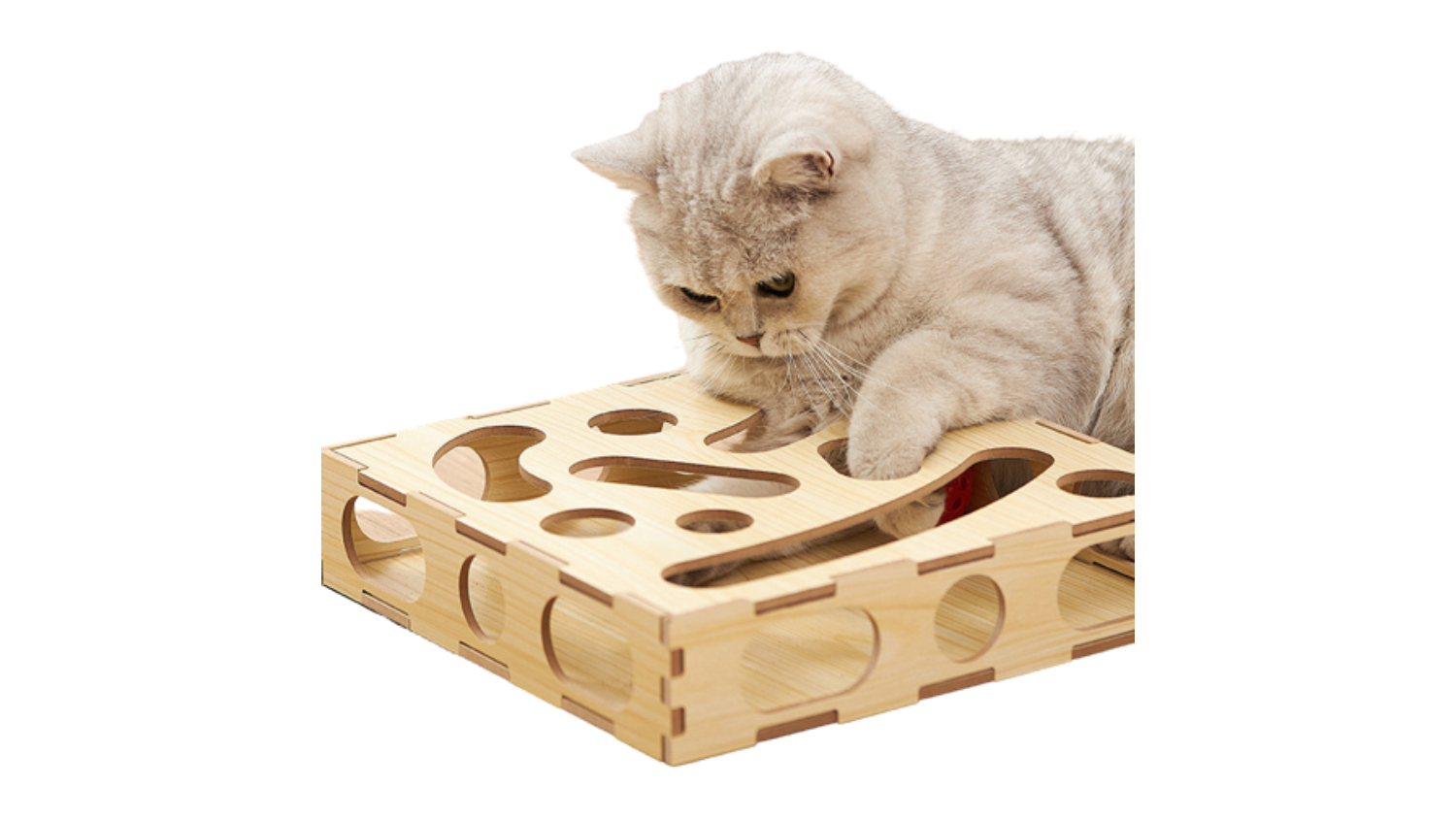Transform your cat's playtime into a fun-filled adventure with the Fluff n' Stuff Wooden Maze Puzzle Box Cat Toy. This innovative toy helps engage your cat's hunting abilities. With its intricate design and uniquely shaped cutouts, it keeps your cat sharp and entertained.