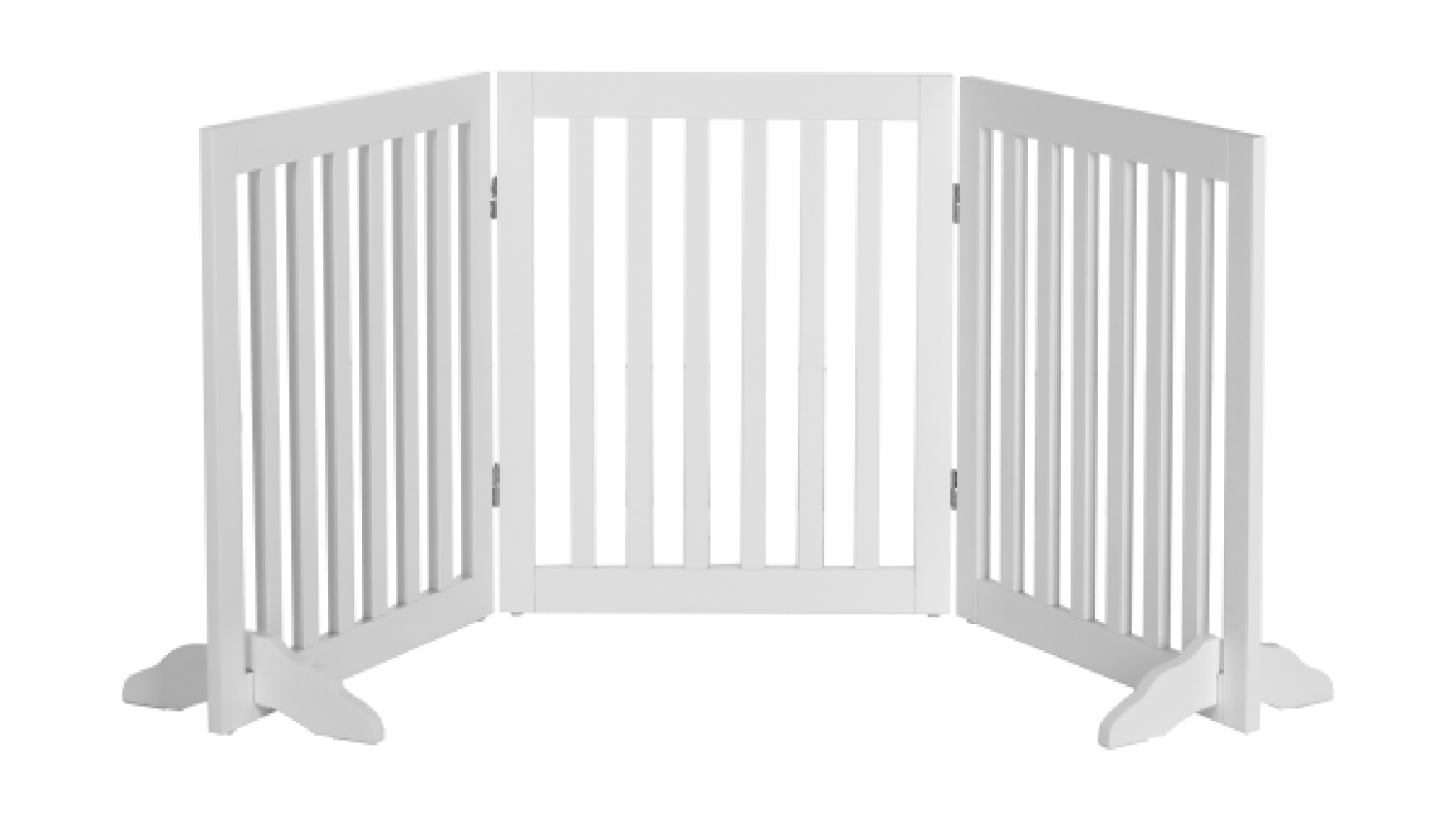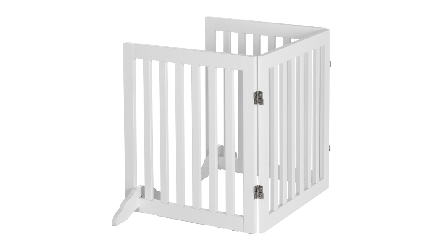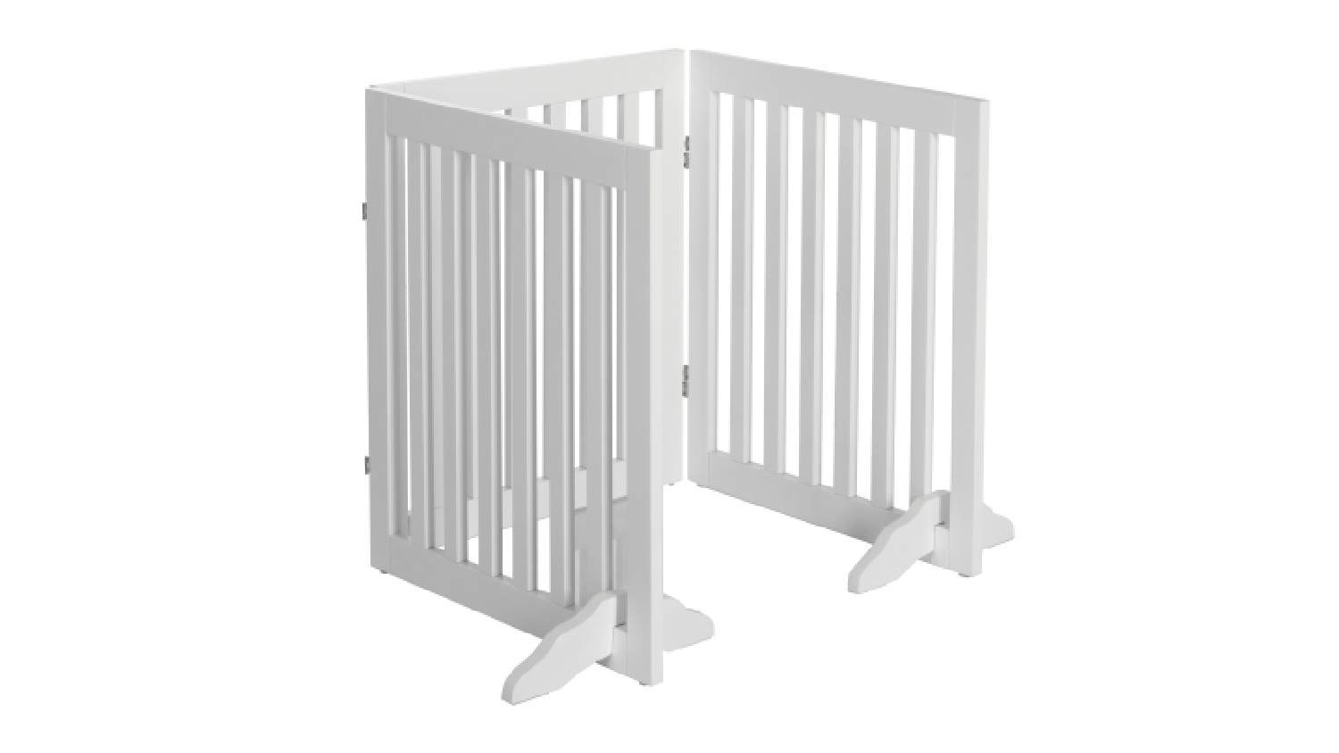 Charlie's Freestanding 3-Panel Pet Gate is the perfect solution for pet parents. This easy-to-use gate allows you to quickly and easily block off areas of your home, keeping your pet safe and secure while you're busy. It is also easy to set up and store anywhere, no need to bolt and jam it between doors!