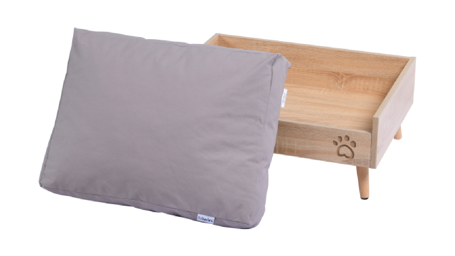 Treat your furry friend to the best of the best with Charlie's "Scandi" Elevated Pet Bed w/ Mattress. This bed features a pine frame and an extra loft mattress that will provide your pet with comfort and support. Now your fur baby can enjoy the ultimate sleeping experience!
