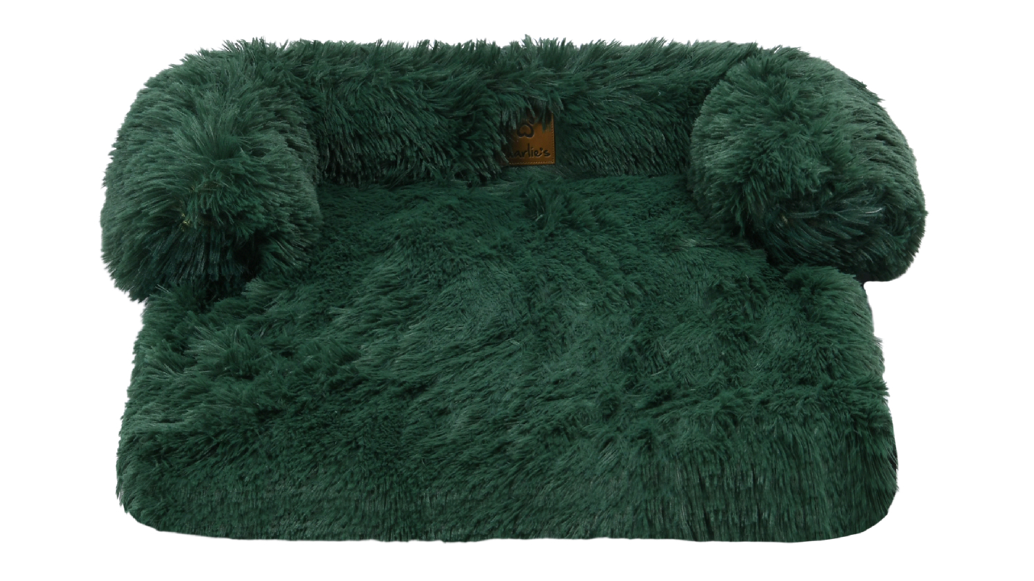 Charlie's Shaggy Faux Fur Square Pet Bed with Padded Bolster Small - Eden Green