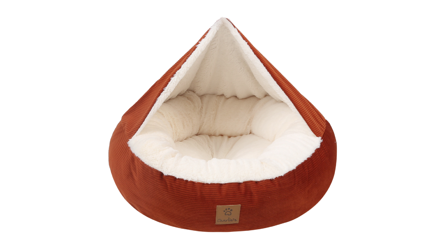 Charlie's "Snookie" Corduroy Fabric Pet Bed with Hood Medium - Terracotta