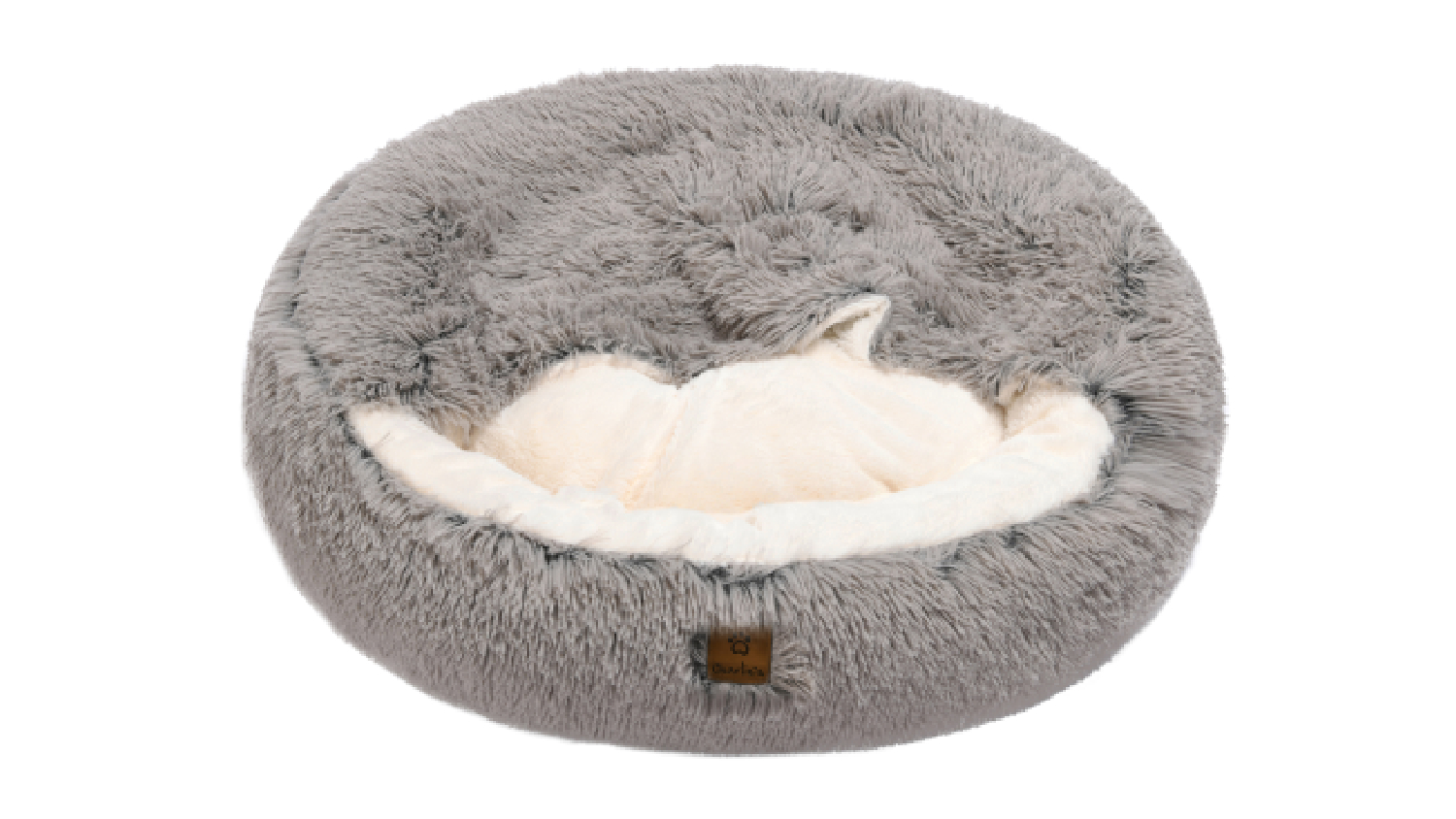 Charlie's "Snookie" Faux Fur Pet Bed with Hood Medium - Grey