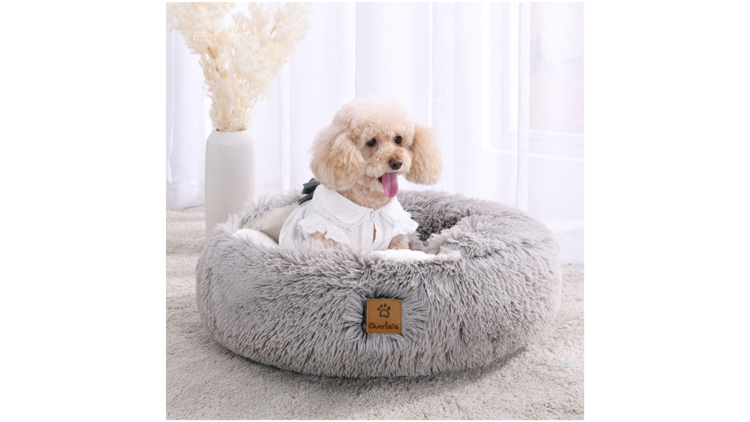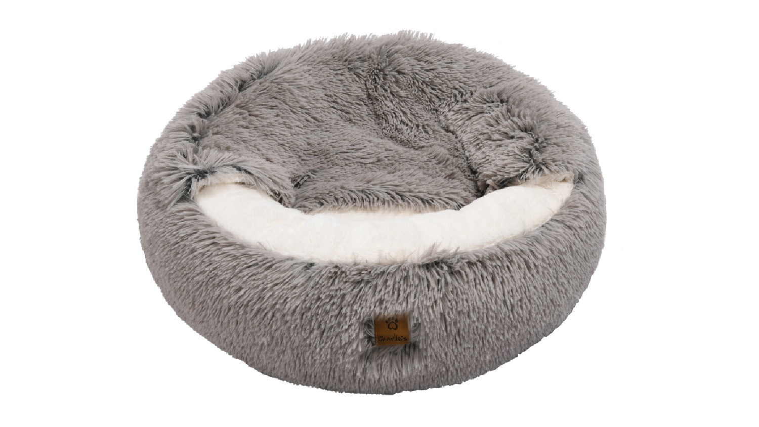 Charlie's "Snookie" Faux Fur Pet Bed with Hood Small - Grey
