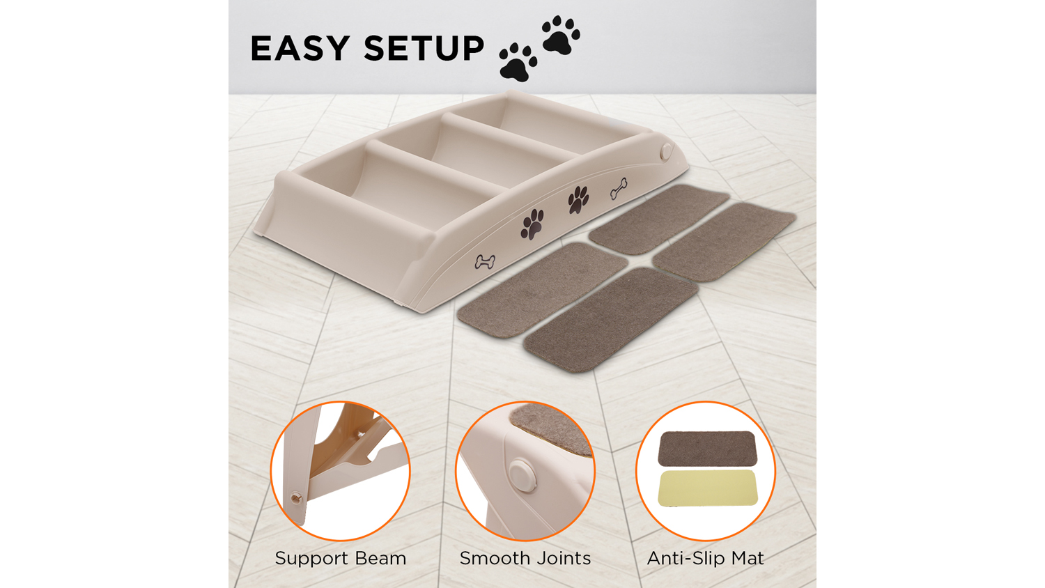 Help your furry companion move with ease using the Furtastic Foldable Pet Stairs. This unit is ideal for small or senior pets who need a little boost to reach higher spots like your bed, sofa, or car. Designed with a non-slip surface for extra grip, these stairs offer safe, stress-free access to cuddle zones and nap spots.