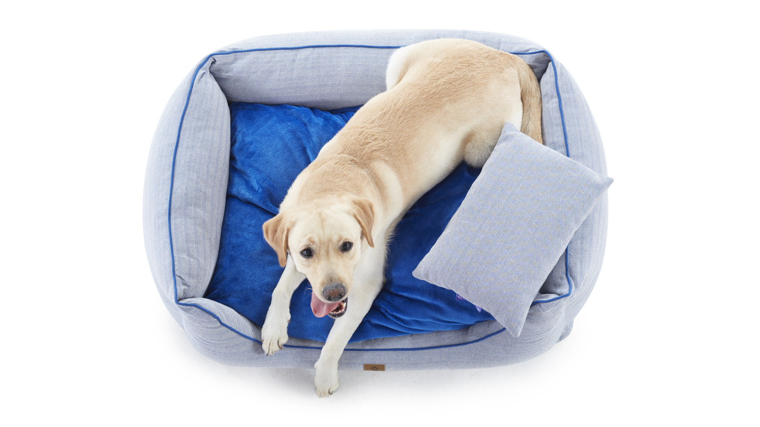 Charlie's Hampton Dog Bed with Blanket, Pillow Large - Herringbone Blue/Grey