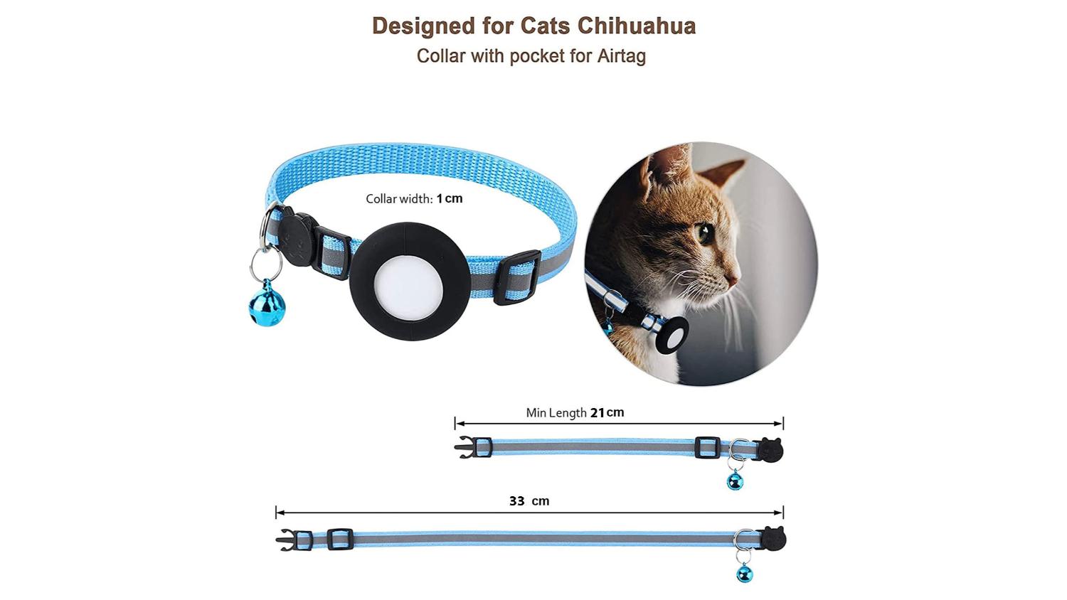 Kmall Quick Release Reflective Cat Collar with Bell, AirTag Holder - Blue