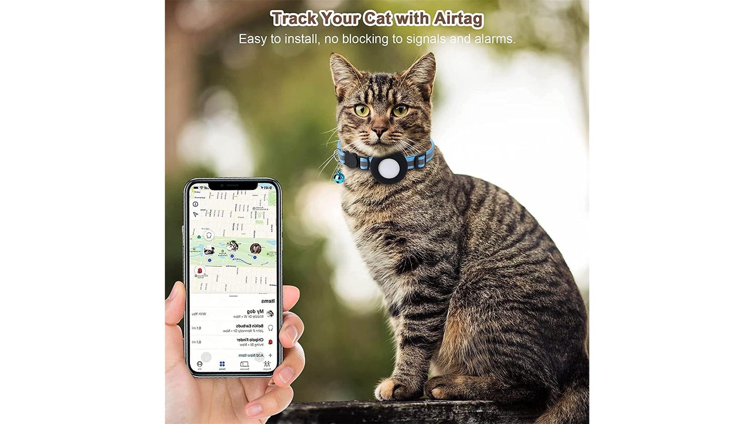 Track your feline friend in style with the Kmall Quick Release Reflective Cat Collar with Bell and AirTag Holder! Made from durable PU nylon with a microfibre leather enclosure for your AirTag*, this collar ensures you’ll always know where your cat is. This comfy collar also features reflective stripes for nighttime visibility and adjustable collar length. Plus, the breakaway buckle ensures safety during playtime.